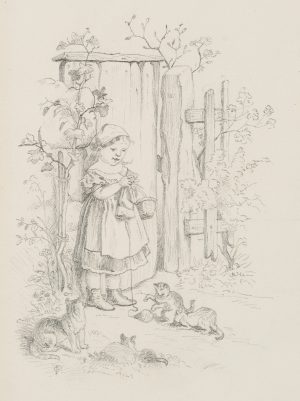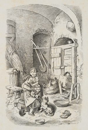 PINCKE (19.Jhd) nach PLETSCH (*1830), Mädchen mit Kätzchen im Keller, Probedruck