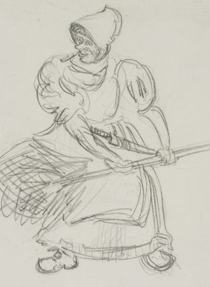 B. BURGER (1892-1968), Kostümstudie, Karneval, Hexe mit Besen, Bleistift