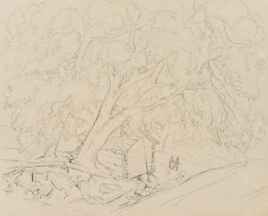 E. BRETENIÈRES (*1804), Hütte im Wald bei Stalden VS, Schweiz, 1838, Bleistift