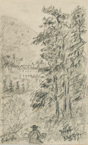 Unbekannt (19.Jhd), Selbstporträt eines Landschaftszeichners , 1899, Bleistift