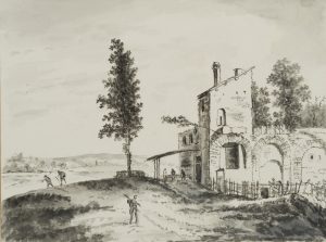 C. AMSTEL (1726-1798) zug., Wandernde Musiker an Bauernhaus, Rad. Klassizismus
