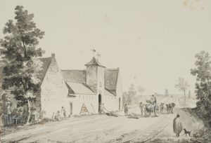 K. HOOG (19.Jhd), Belebte Landstraße, um 1840, Realismus Reisen