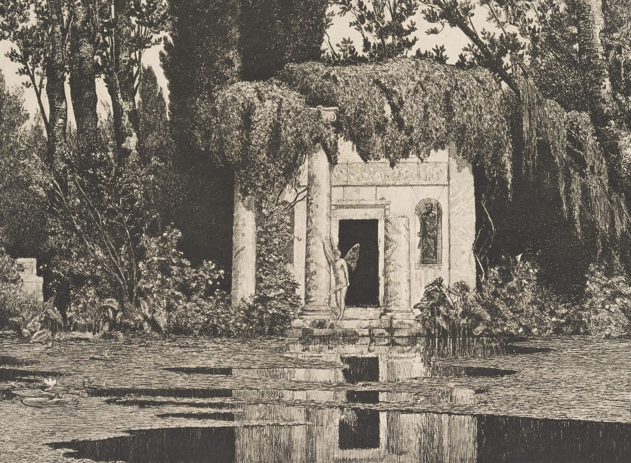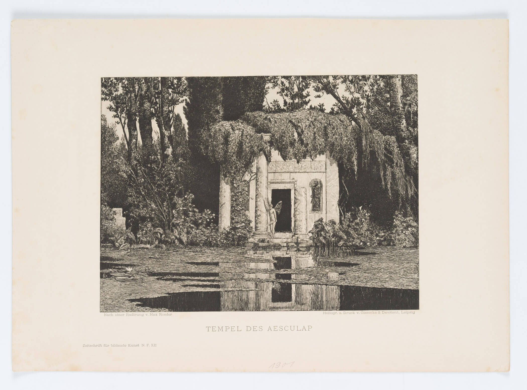 - Description: Heliogravure after the etching by Max Röder with the Temple of Aesculapius; the painting is alternatively titled Nymphaeum.