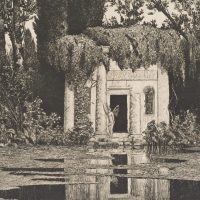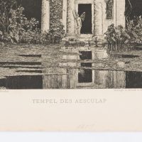 - Beschreibung: Heliogravure nach der Radierung von Max Röder mit dem Tempel des Aesculap; das Gemälde wird alternativ auch als Nymphäum betitelt.