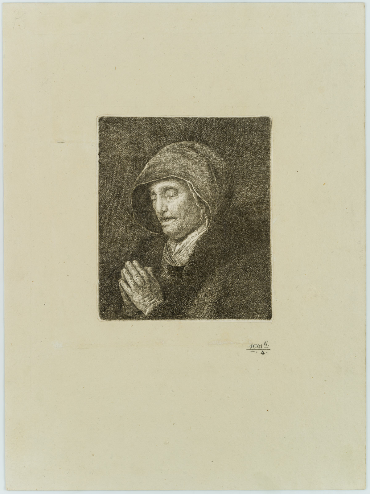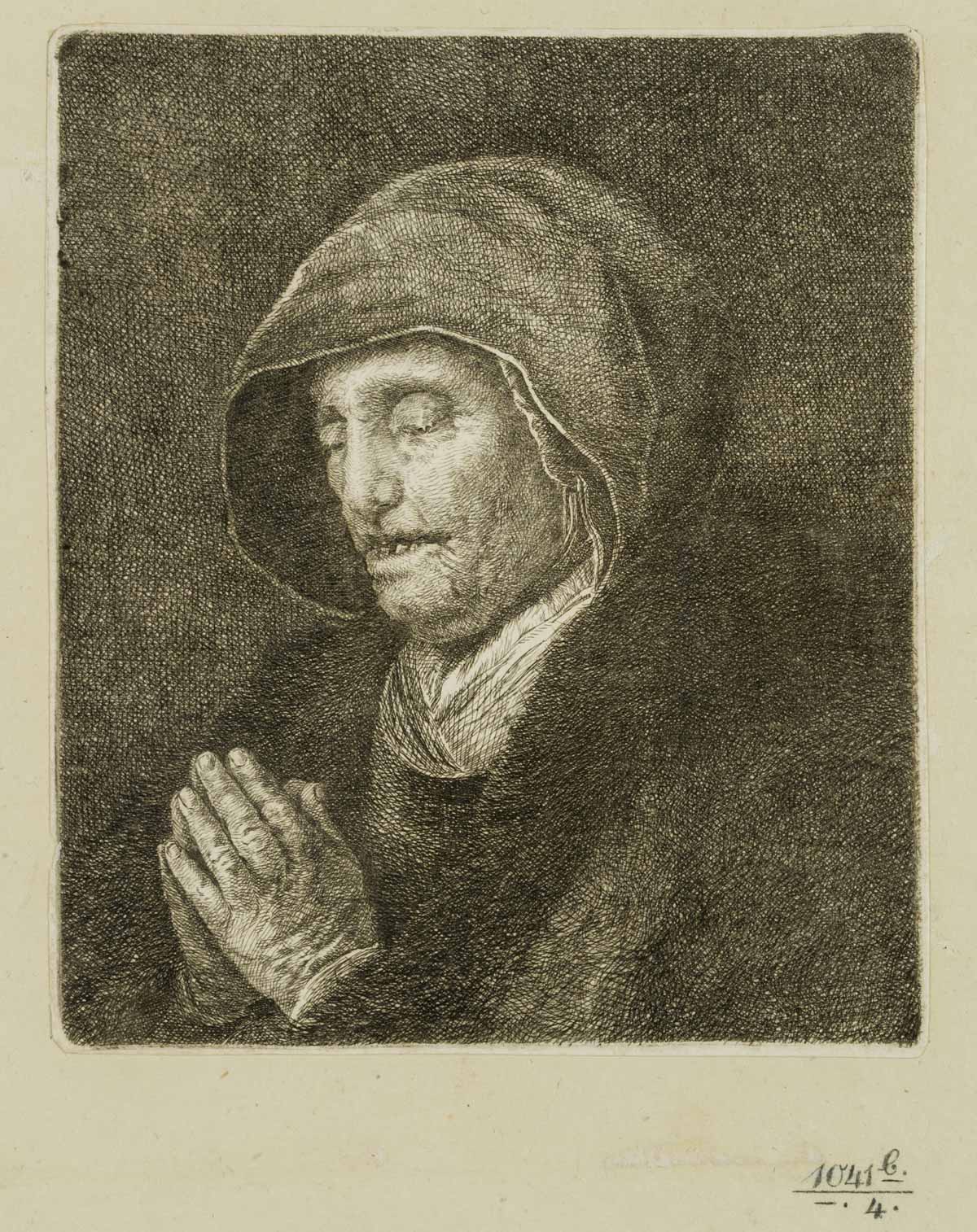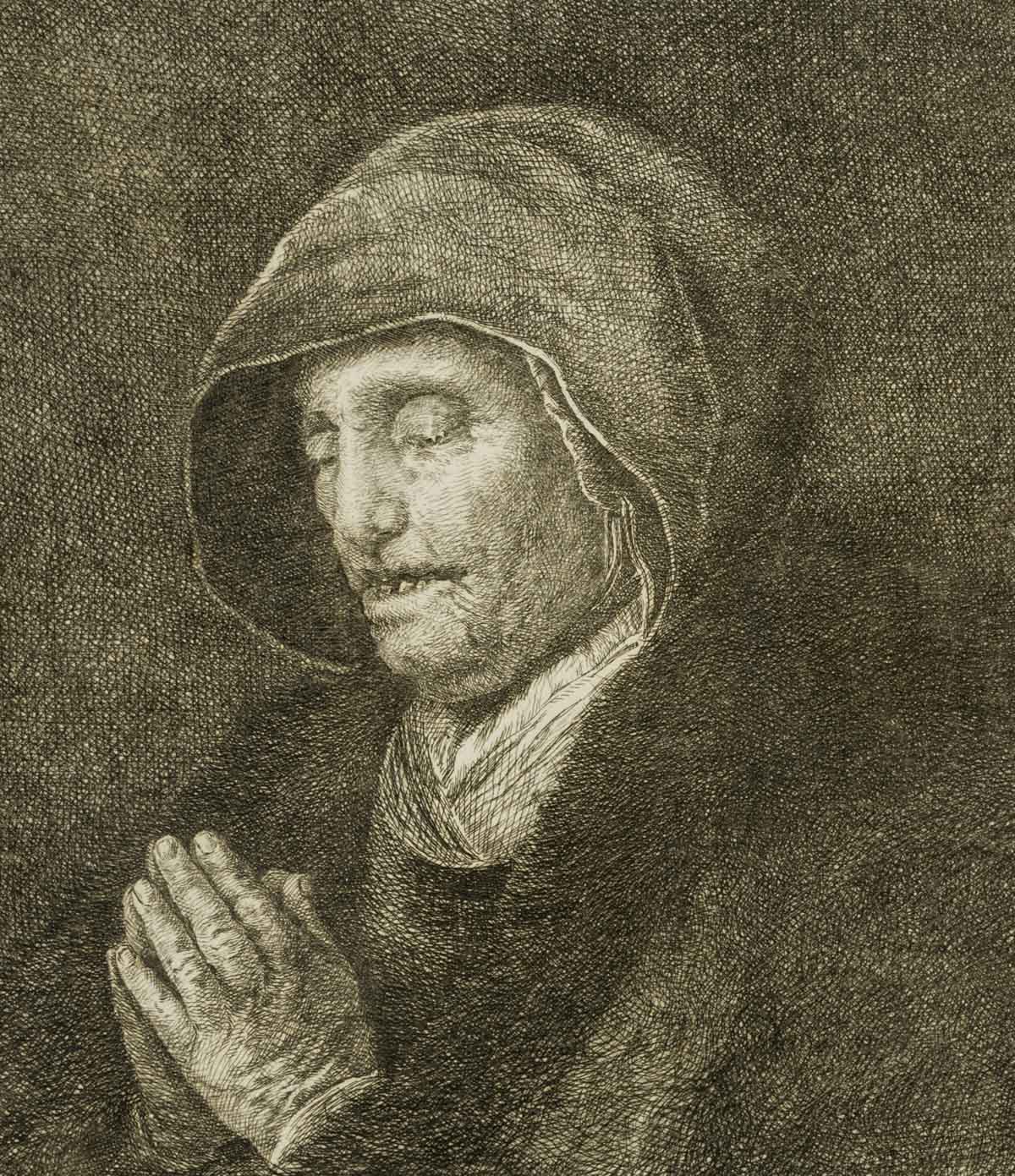 Amalie Baader (1763 Erding – 1840 Munich), Portrait of a praying old woman, c. 1800, Etching