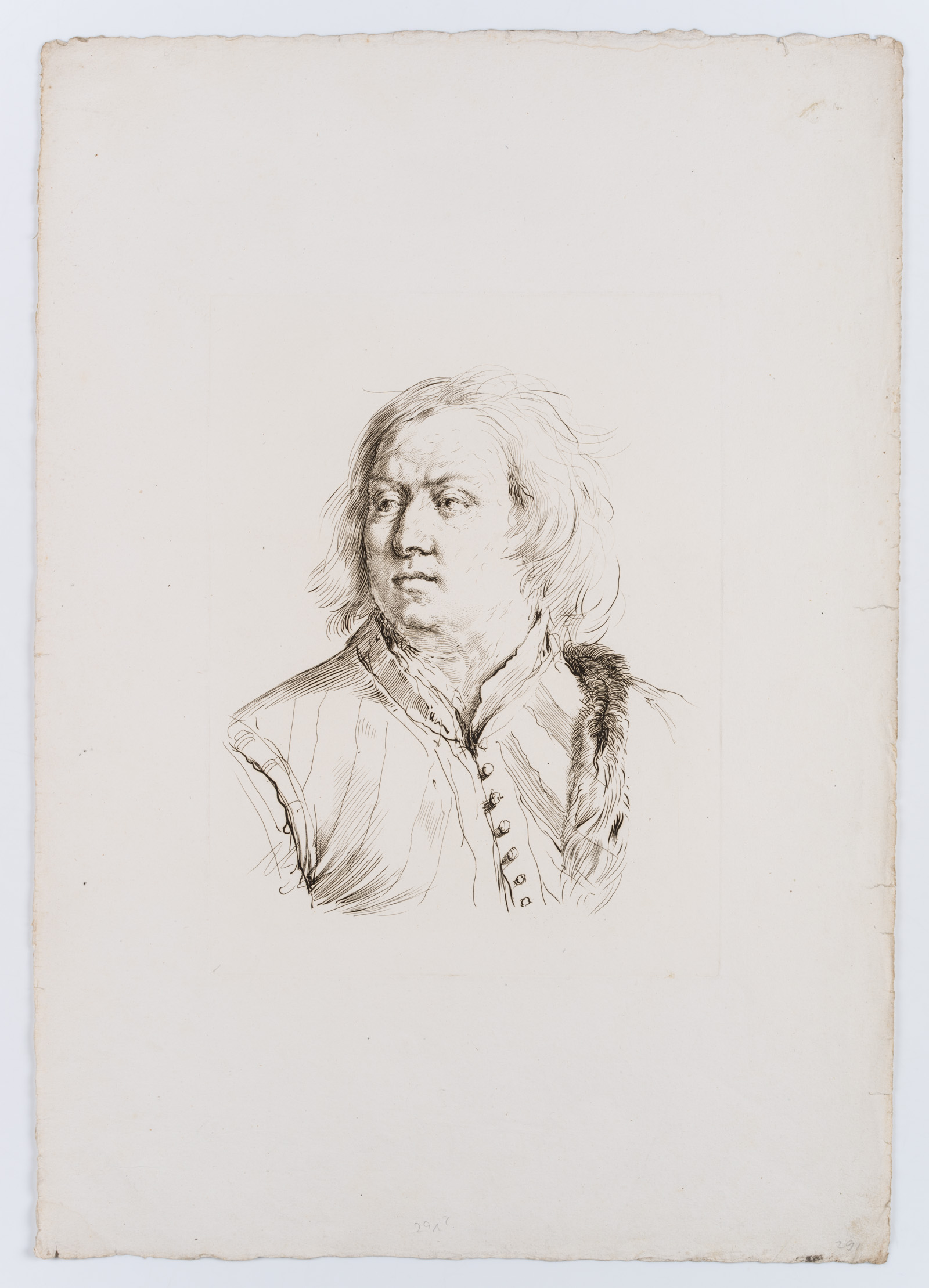 Adam von Bartsch (1757 Wien – 1821 ebd.) zugeschrieben, Porträtstudie eines Mannes im Kostüm, um 1800, Radierung