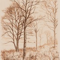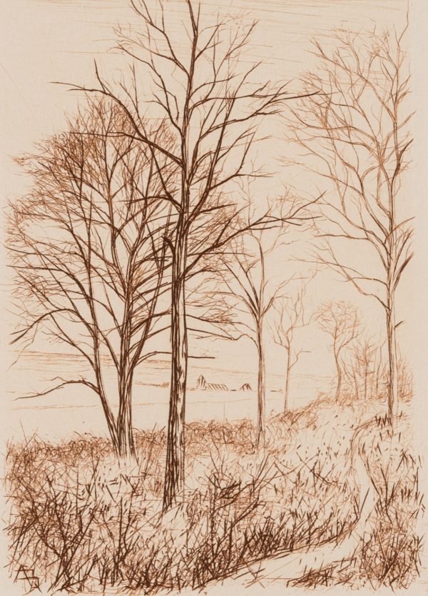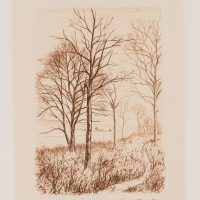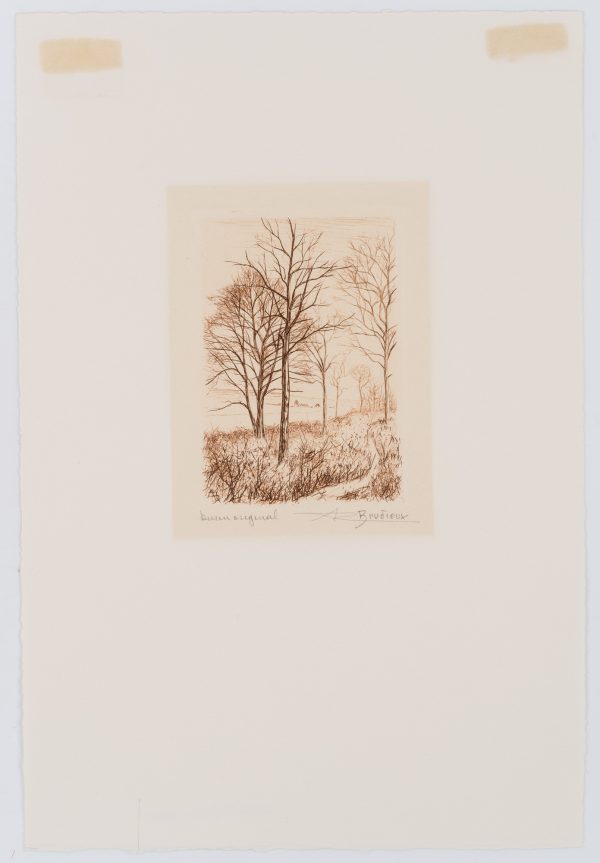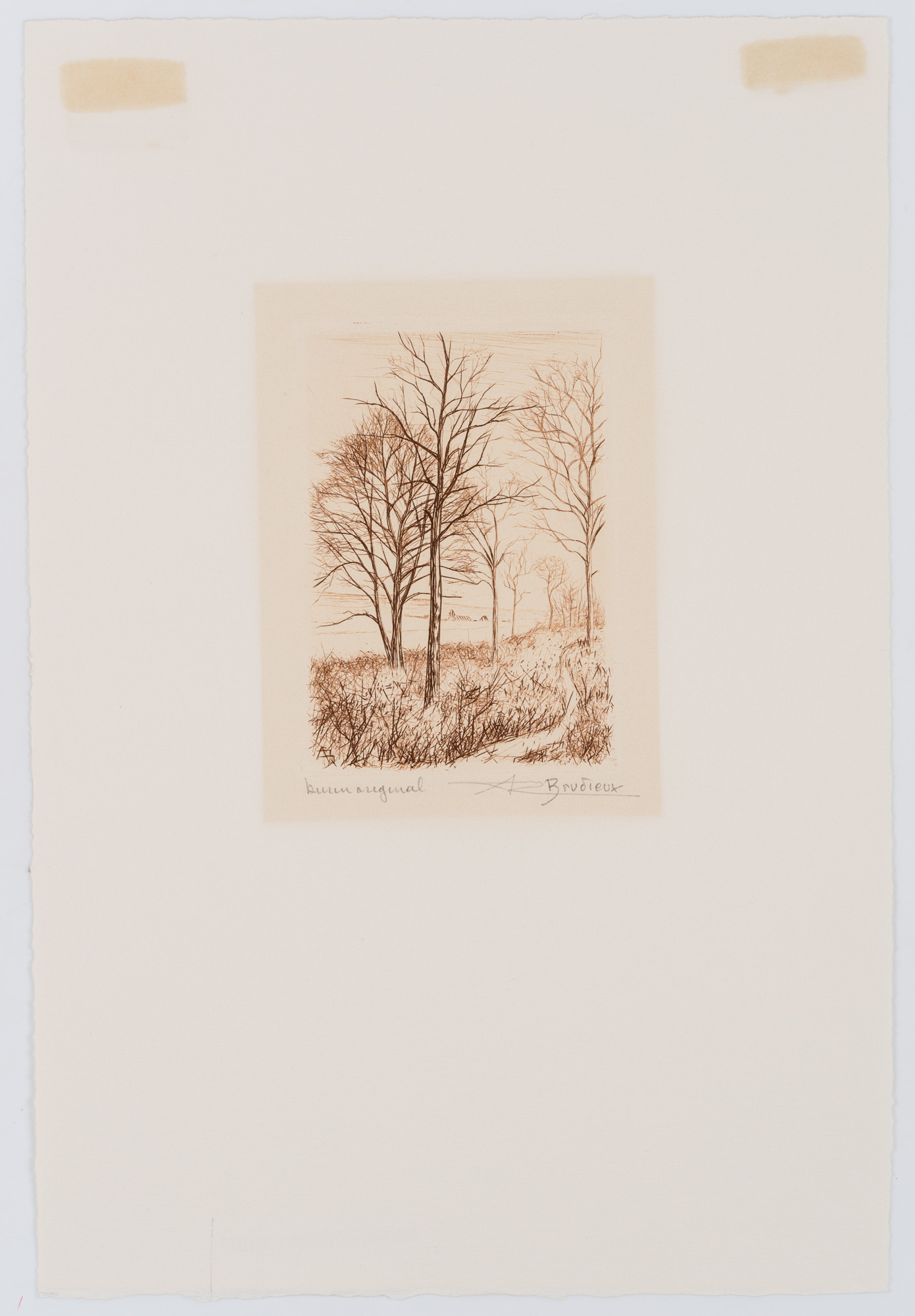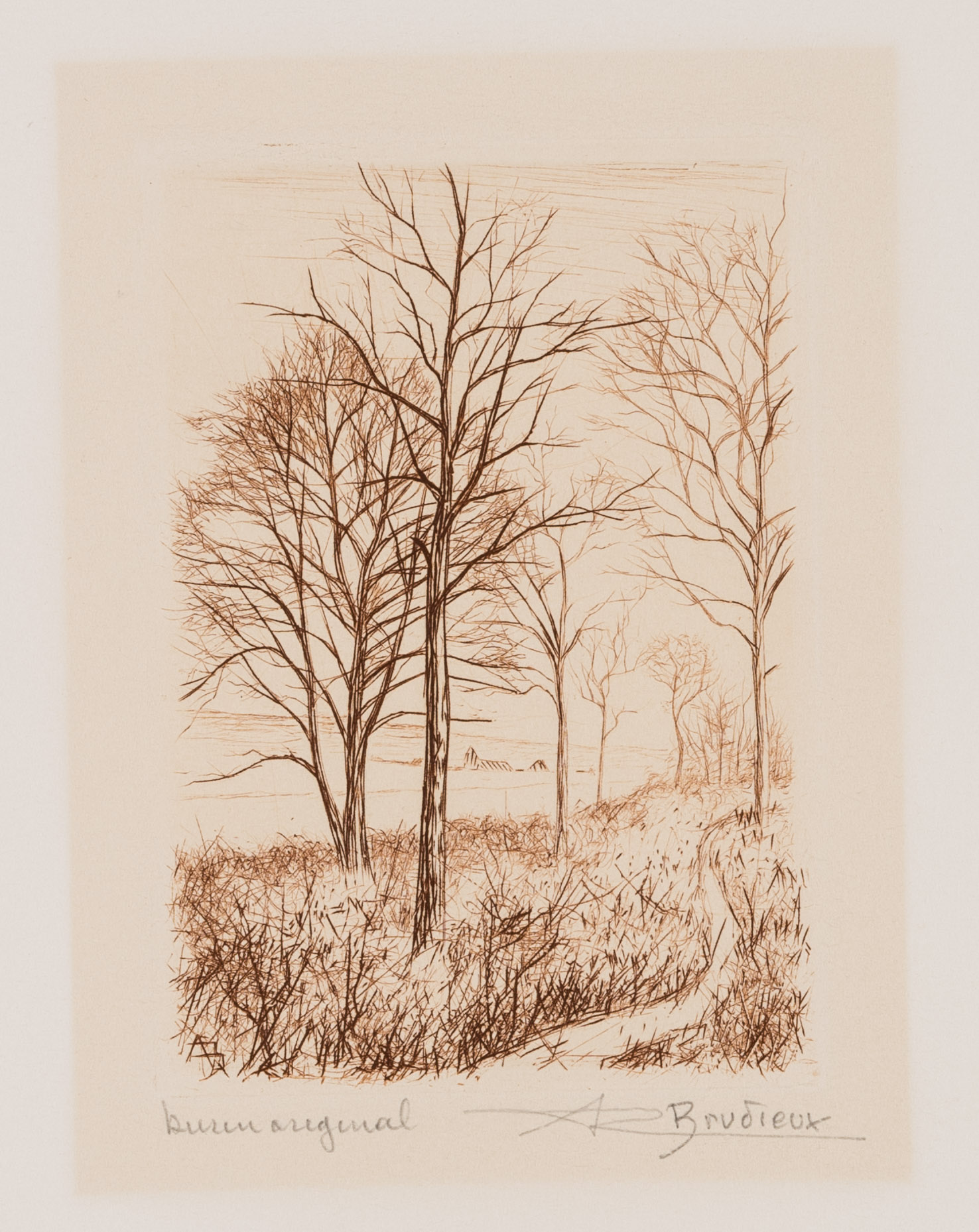 Andre Roland Brudieux (1921 – 1997 ), Winter landscape with a path past unfoliaged trees, c. 1950, Etching
