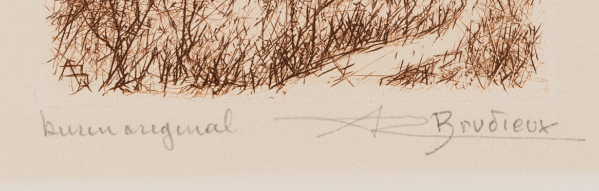 - Inscription: Signed “Brudieux” below the printing plate on the right and inscribed “Burin original” on the left.