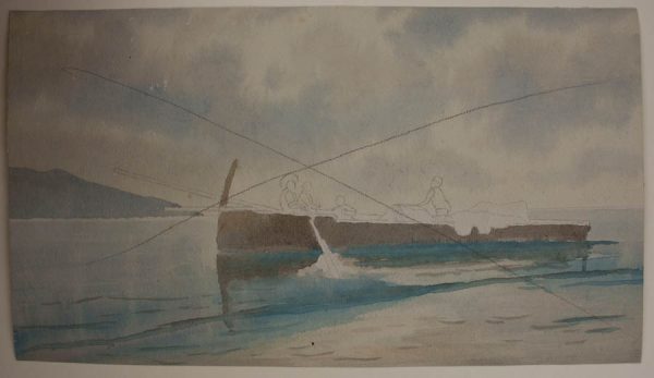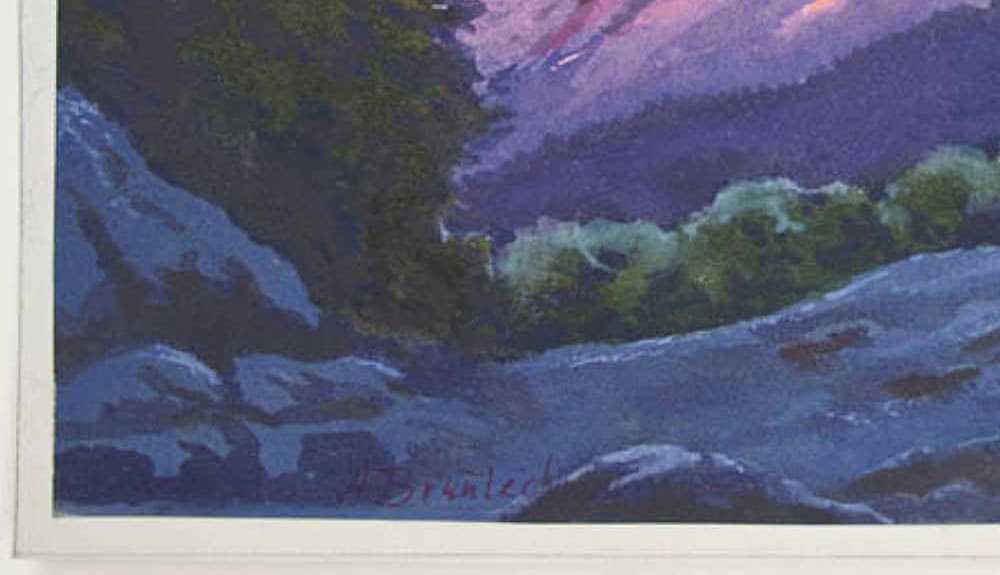 - Beschreibung: Alpenglühen Adolf Brunnlechner, Aquarell auf Papier sign. links unten: A. Brunnlechner,. Beschreibung: rückseitig eine weitere Zeichnung, vom Künstler verworfen.