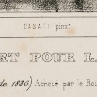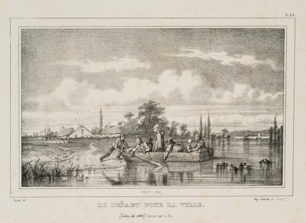 - Inscription: Signed below the image “Casati del. / CASATI pinxt. / Imp. D’Aubert et Comp. 1e.”, titled and inscribed below in the centre in typographic script in French: “Le Depart pour la ville. / (Salon de 1836) Acheté par le Roi.”; numbered at upper right: “No.39”.
