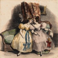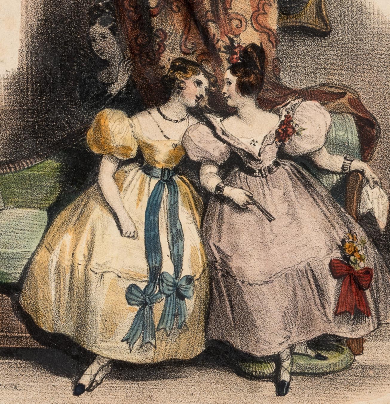 Achille Devéria (1800 Paris – 1857 ibid.), Ladies’ chat on the canapé with a secret listener, 19th century, Lithography
