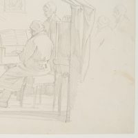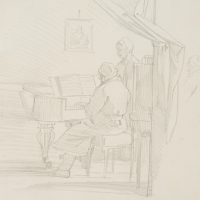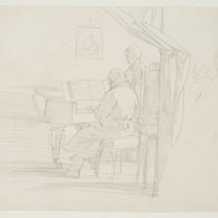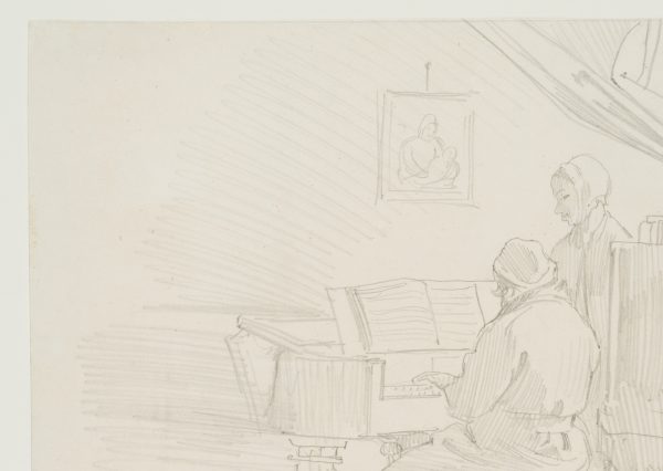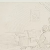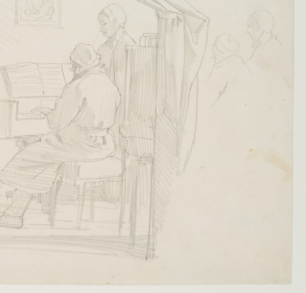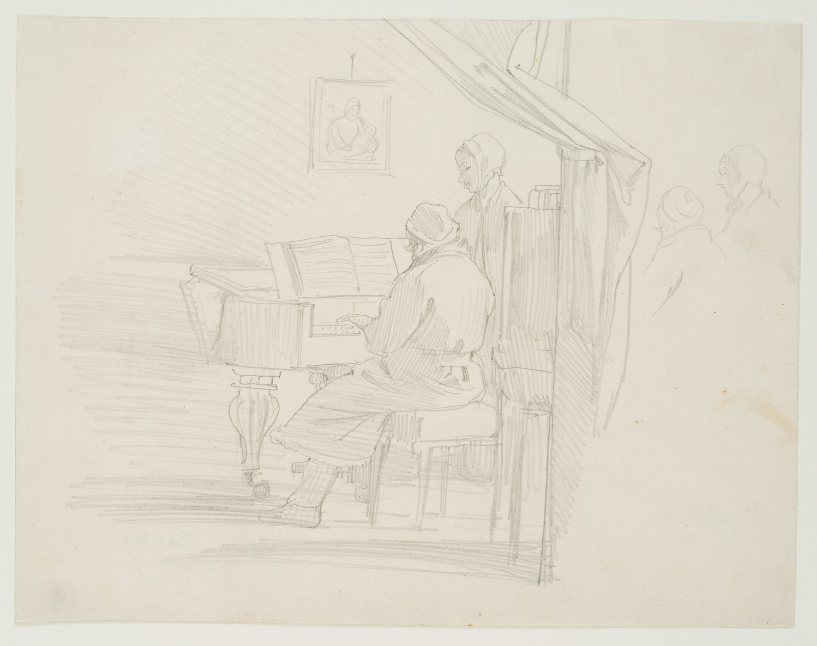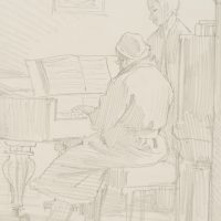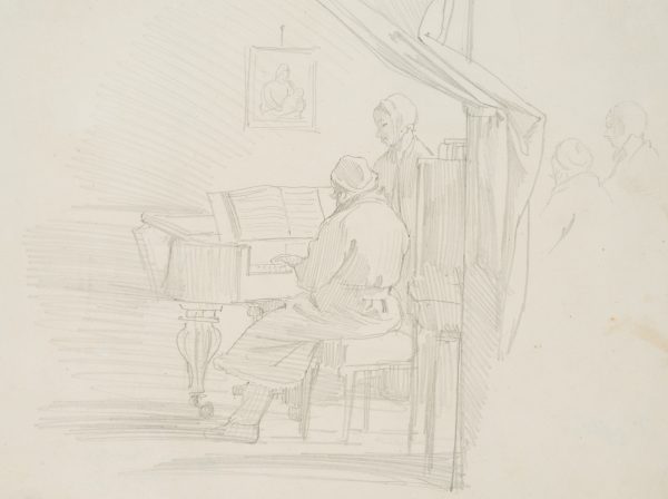 Adolf Echtler (*1843 ), Komponist Karl Ludwig Drobisch am Klavier, 19. Jahrhundert, Bleistift