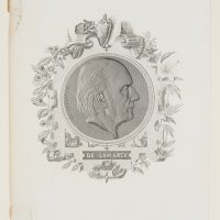 - Beschreibung: Portraitmedaillon im Profil des Biologen und Botanikers Lamarck von Blumen umrankt.