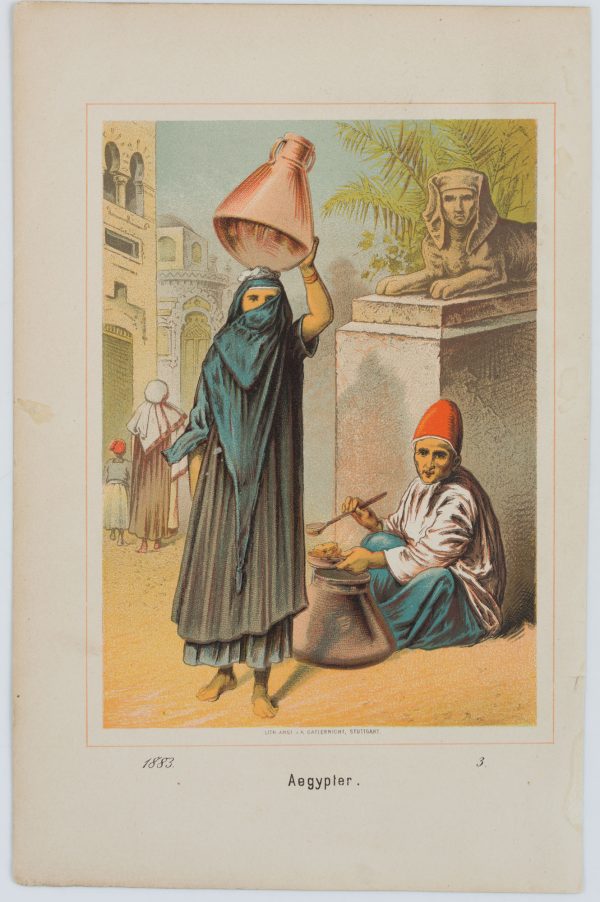 - Beschreibung: Unter der Darstellung bezeichnet “Lith. Anst. v. A. Gatternicht, Stuttgart “, darunter datiert und betitelt “1883 / Aegypter. / 3.”