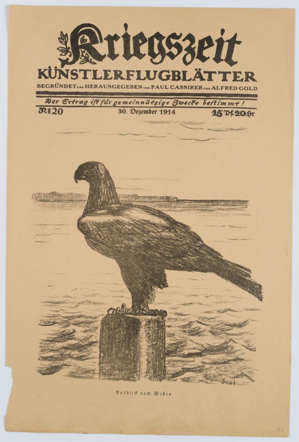 August Gaul (1869 Hanau – 1921 Berlin), Outlook to the West’ Title page of ‘Kriegszeit – Künstlerflugblätter’, issue no 20, 30 December 1914, published by Paul Cassirer, 1914, Lithography