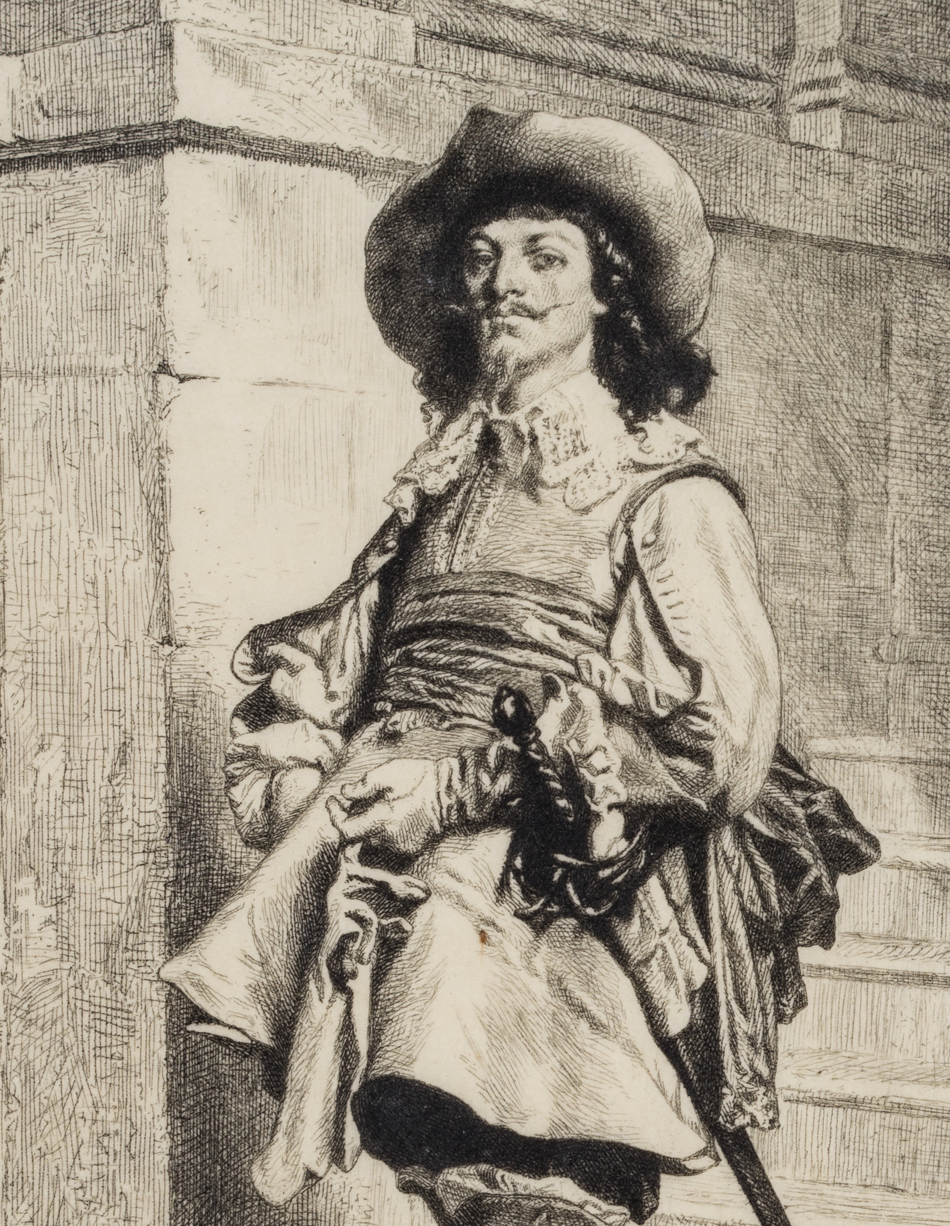 Achille Isidore Gilbert (1828 Paris – 1899 ebd.), Der Duellant mit Fehdehandschuh, vor 1900, Radierung