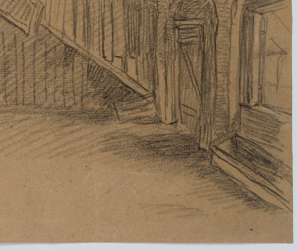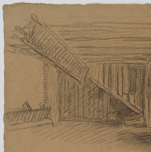 - Description: In today’s understanding, Anton Graff appears as the epitome of the gifted portraitist at the turning point of Classicism and Romanticism. But it was particularly in Dresden, where Graff had been decisively active since he moved there in 1766 and was appointed professor of portrait painting in 1788, that he occupied himself with landscape painting and thus also had an influence on the young artists of the Saxon landscape school. Philipp Otto Runge, who came to Dresden in 1801 and found close contact with Graff, reported: “yesterday I was with old Graff, he has just painted a landscape” and Elisa von der Recke also enquired on 5 November 1801: “Are you, noble friend, painting landscapes quite diligently? Even though Graff had contact with Adrian Zingg and Conrad Gessner and was not closed to the romantic charm of the landscape, especially in the Plauenschen Grund, he seems to have begun to deal with nature in drawings and paintings only around 1800. Berckenhagen’s comprehensive catalogue raisonné lists 98 landscape drawings by Graff that came from his son’s estate, including a depiction of the interior of a stable with a view of a farm. Probably created around 1801 in Blasewitz, it belongs to the group of spontaneous “Erlebnis-Niederschriften”. The picture we are presenting here shows the same stable, only the angle of view has been slightly shifted. The interest is not in the view from the gate, but in the structure of the interior with the boarded wall and the hayracks. Our sheet is probably the first clarifying sketch Graff made of this situation. With quick, rough strokes he captures the immediate impression of the stable lying in dim light. The present work comes from the famous collection of Graff drawings that was auctioned by C. G. Boerner in Leipzig in 1914, largely compiled from the estate of his son. The sheet listed by Berckenhagen is listed under catalogue number 64 and ours under number 65.