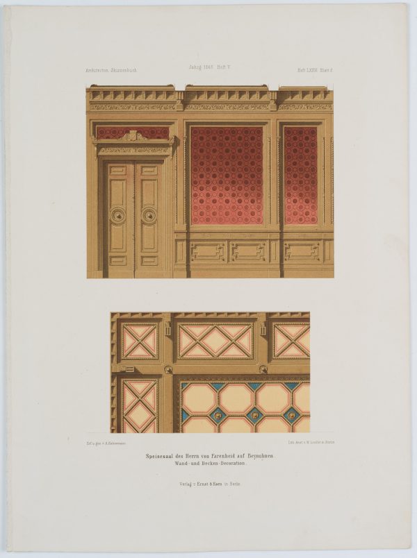 A. Hahnemann (19th century), Dining Hall, Views, Wall & Ceiling Decoration, Architectural Sketchbook, Booklet LXXVI of the Complete Series, 1865, Colour lithography