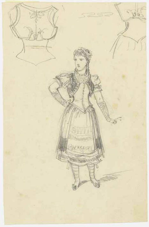 - Description: Albert Hedschel, Young Woman in Traditional Costume, lead, c. 1860. Description: Pencil sketch by Albert Hedschel (attributed). Charming depiction of a young woman in traditional costume with a small waistcoat, fine gloves and artfully pinned up hair. Above two studies of a bodice. Albert Louis Ulrich Hendschel (Frankfurt am Main 1834 – ibid. 1883) was a German painter, draughtsman and etcher.