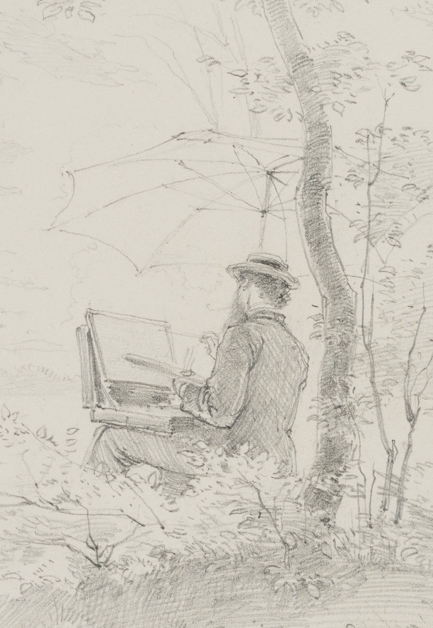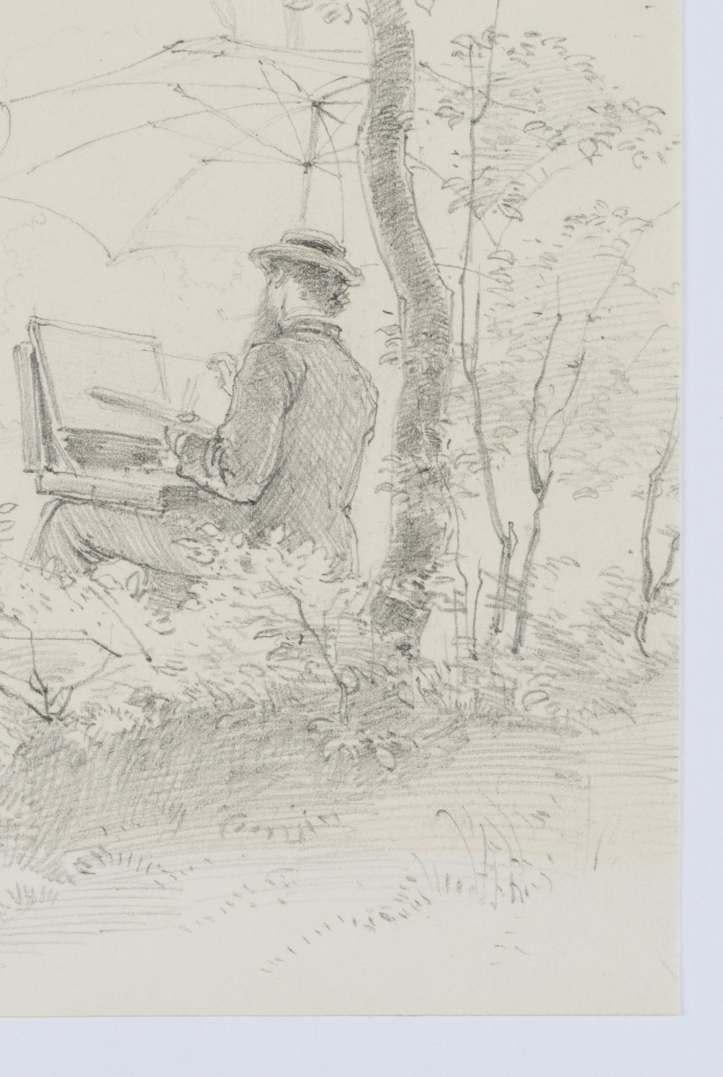 Albert Hendschel (1834 Frankfurt on the Main – 1883 ibid.), Artist in the forest (probably Joh. Hasselhorst), 19th century, Pencil