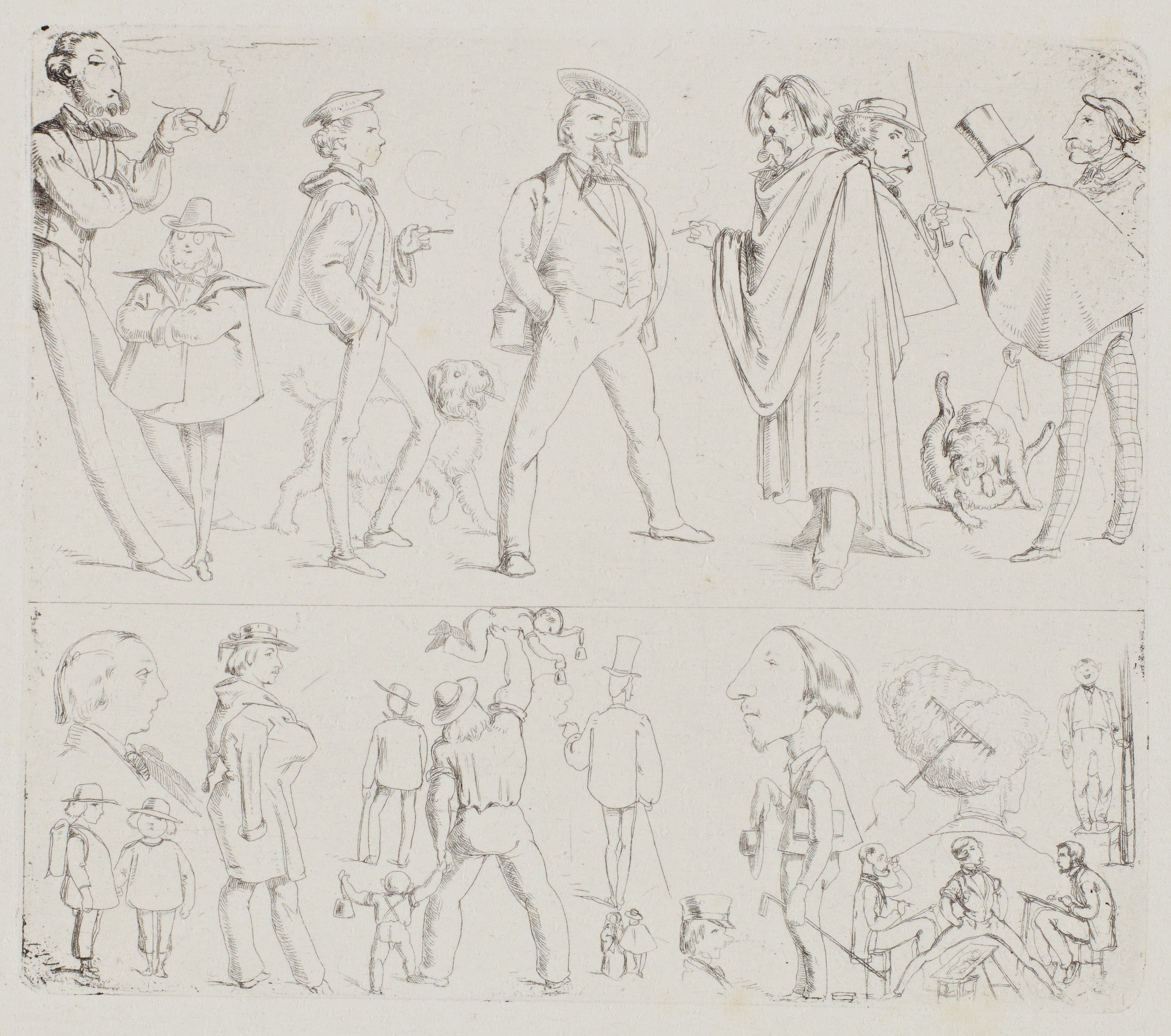 Albert Hendschel (1834 Frankfurt am Main – 1883 ebd.), Künstlerkarikaturen, um 1851, Radierung