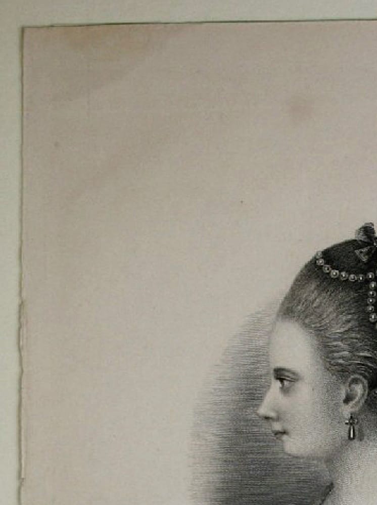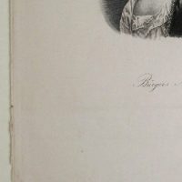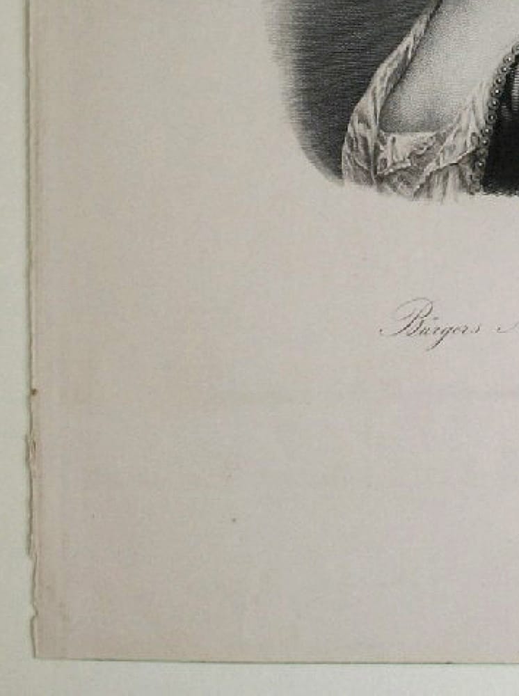 - Description: Steel engraving by Auguste Hüssner, signed and dated (difficult to decipher) in the plate lower right, inscribed below: “Bürgers Molly”. Very nice portrait of a young woman to the left. The pinned hair and fine dress are decorated with strings of pearls. Auguste Hüssener (Stettin 1789 – Berlin 1877) was a German engraver and miniature painter. She had studied under the engraver Ludwig Buchhorn, who was a lecturer at the Prussian Academy of Arts and head of the Academic School of Engraving. Hüssener was regularly represented with her works at the exhibitions of the Berlin Academy. Her portraits of important contemporaries from the high nobility, art circles, diplomacy and science made her well-known. Her main focus was on the women of her time.