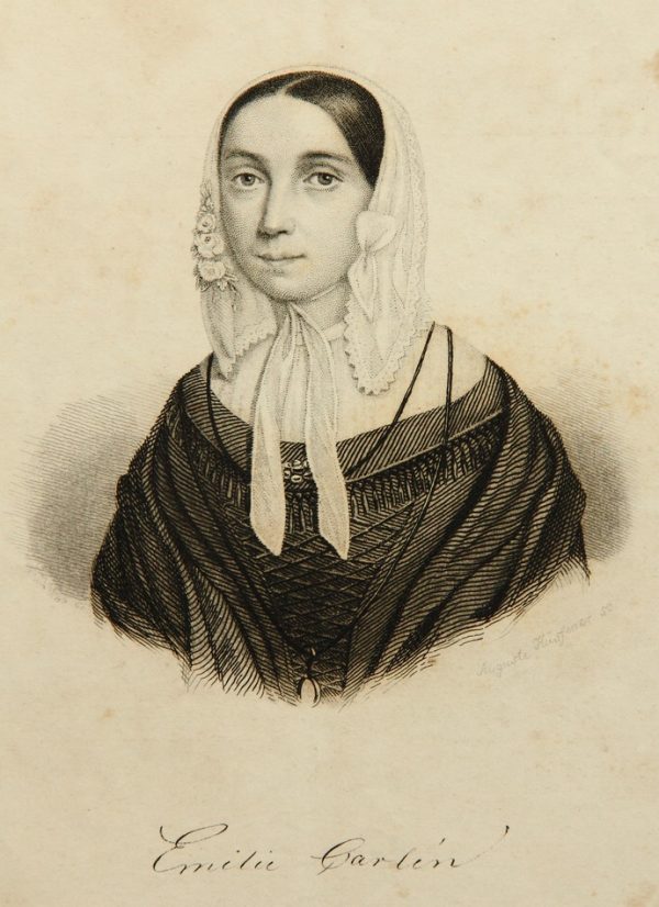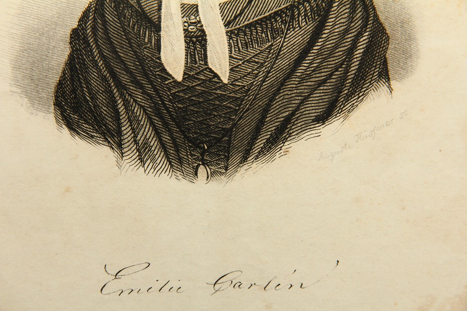 - Bezeichnung: Unterhalb mit dem Namen der Dargestellten „Emilie Carlén“ bezeichnet.