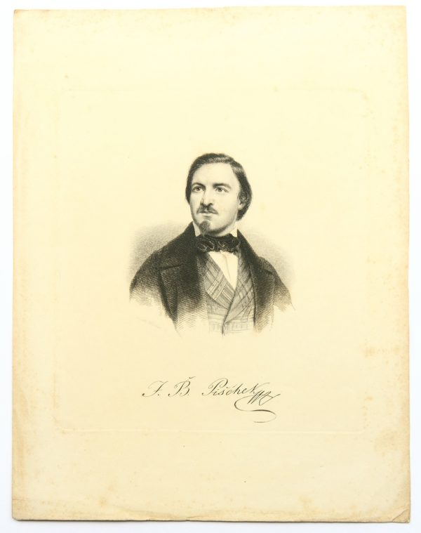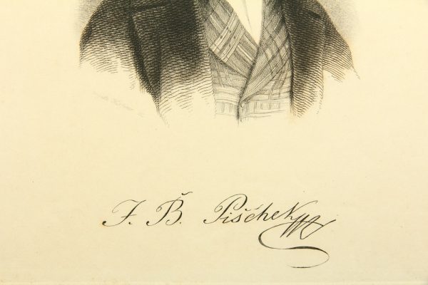 - Bezeichnung: Unterhalb der Darstellung in der Druckplatte vom Künstler signiert. Darunter befindet sich die autographische Unterschrift des Dargestellten “F.B. Pischer[?]”