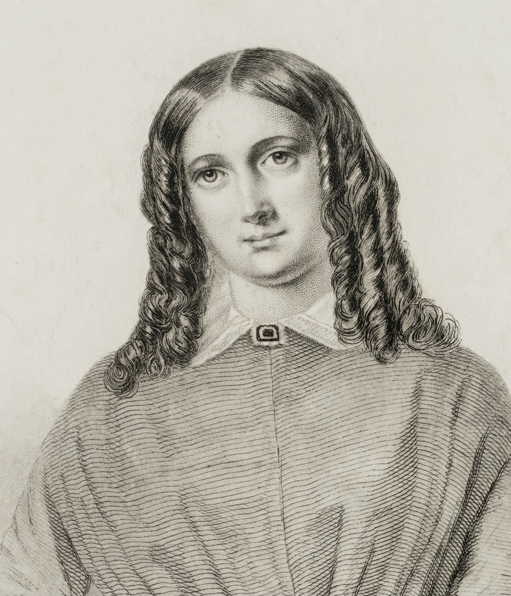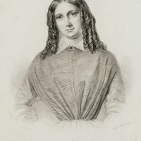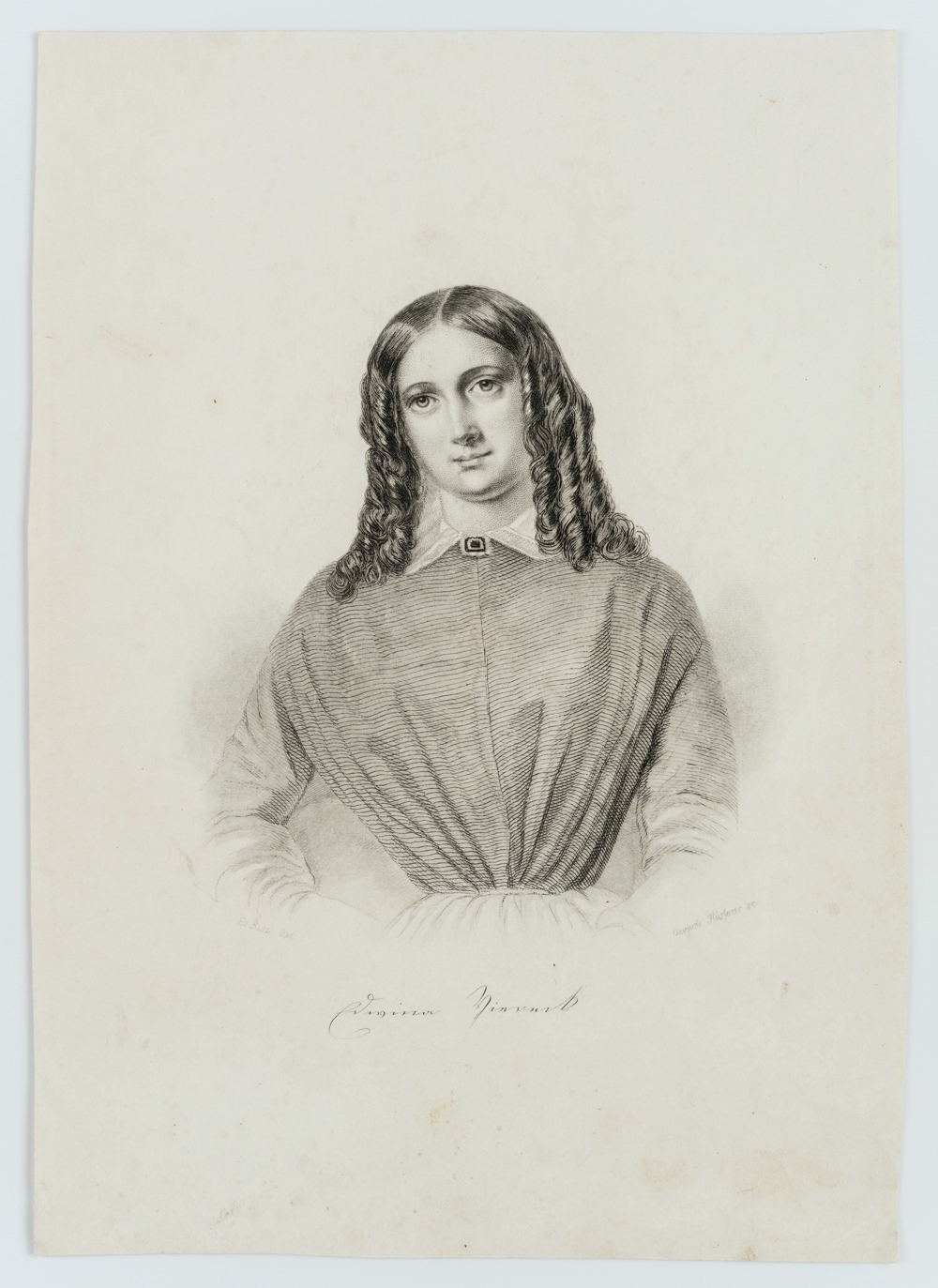 - Description: Half portrait in quarter profile of a young woman with corkscrew curls. After an original by Eduard Ratti (*1816 Berlin).