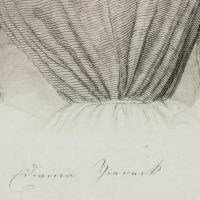 - Inscription: Signed by the artist at the bottom of the printing plate, with a facsimile signature of the sitter below.