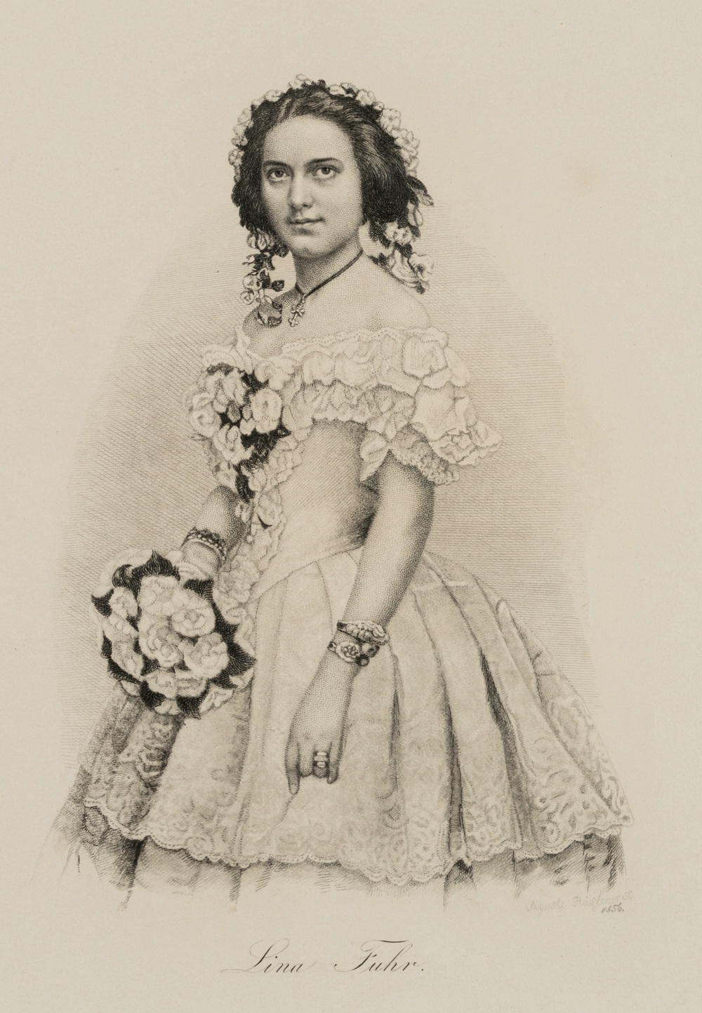 Auguste Hüssener (19th century), Portrait of Lina Fuhr (1828-1906), 1856, Steel engraving