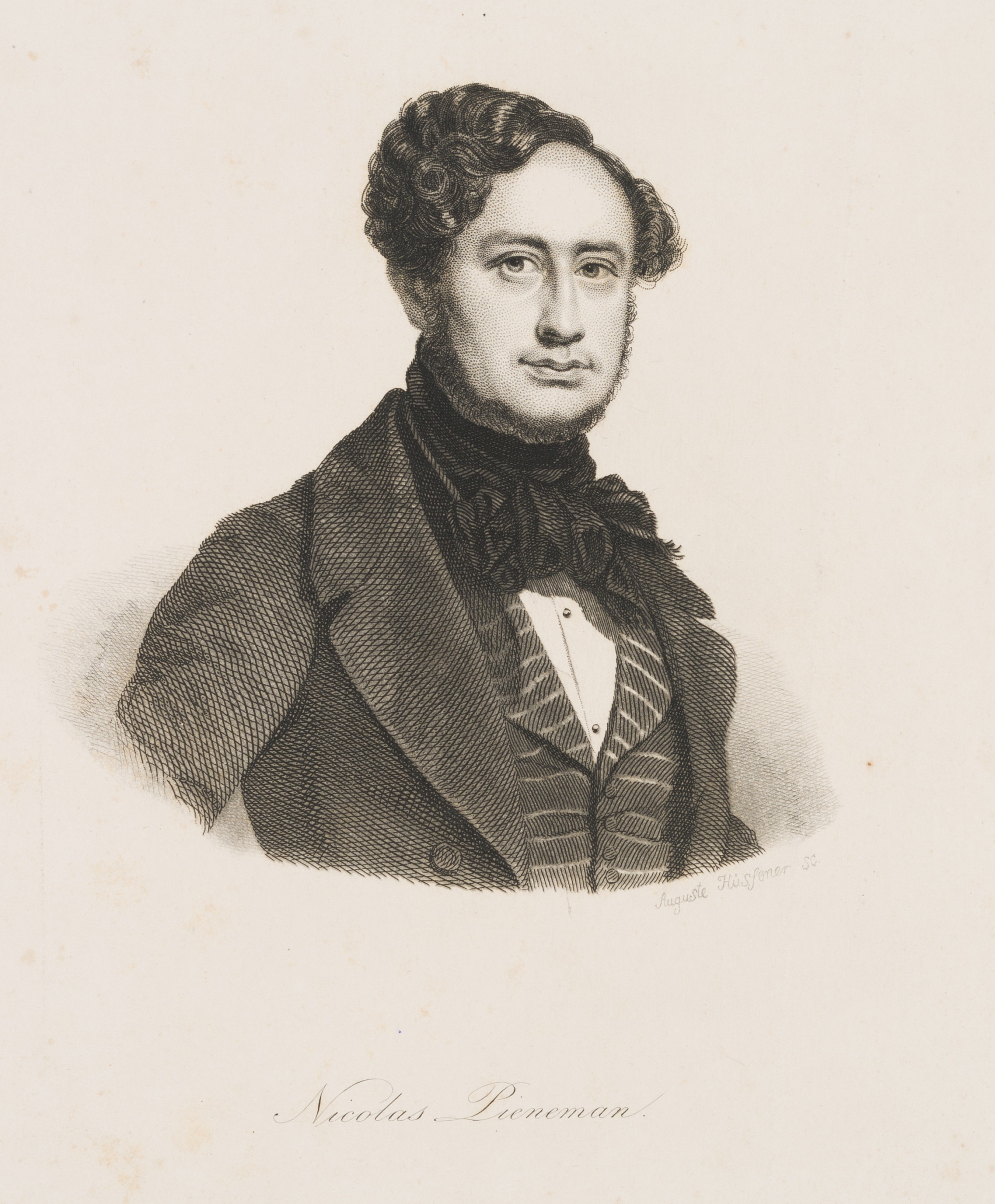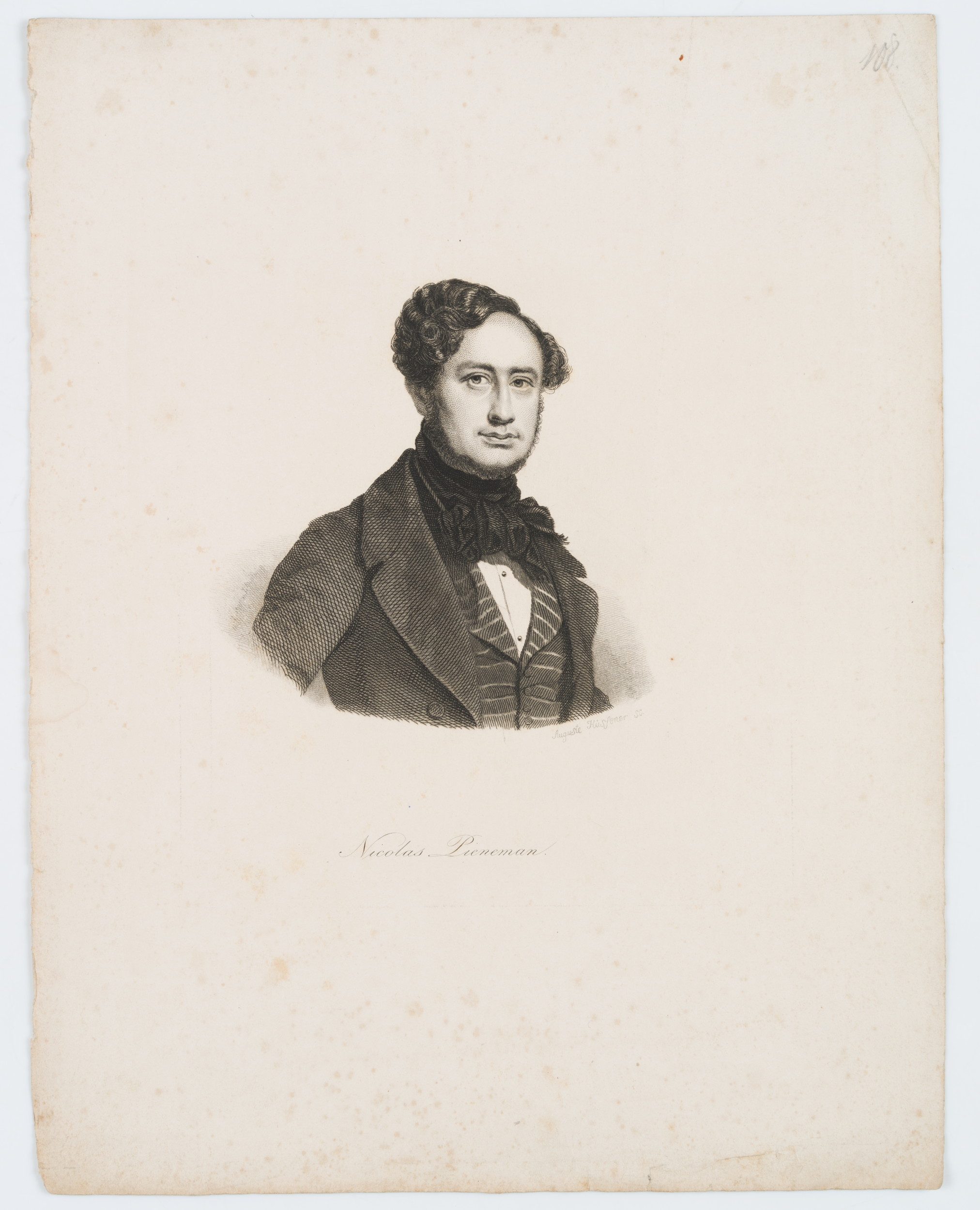 Auguste Hüssener (19. Jahrhundert), Portrait des Malers Nicolas Pieneman. Bruststück, leicht seitlich, um 1850, Kupferstich