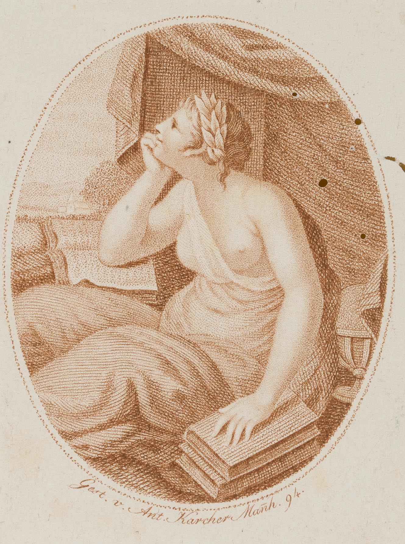 Anton Karcher (1760 Colmar – um 1814 Mannheim), Mythologische Darstellung, Denkerin, 1794, Lithographie