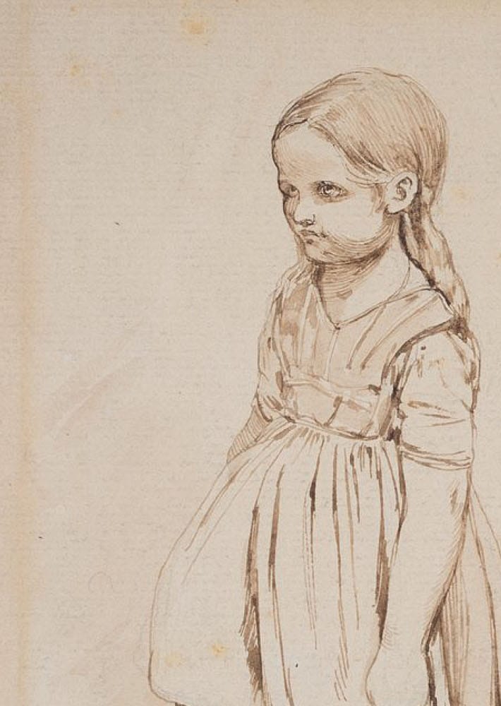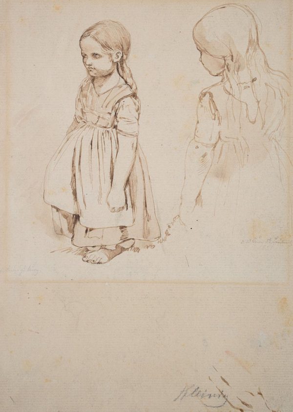 August Kleinig (1822 Dresden – 1869 ibid.), Girl with short legs, 1851, Pen drawing