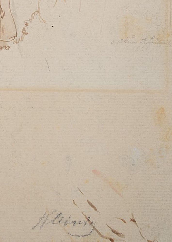 - Inscription: Dated in the centre right: “den 13. Juni 51”, inscribed below: “Kleinig”. Blasewitz?, on the reverse further drawing