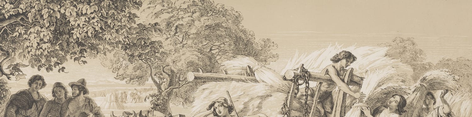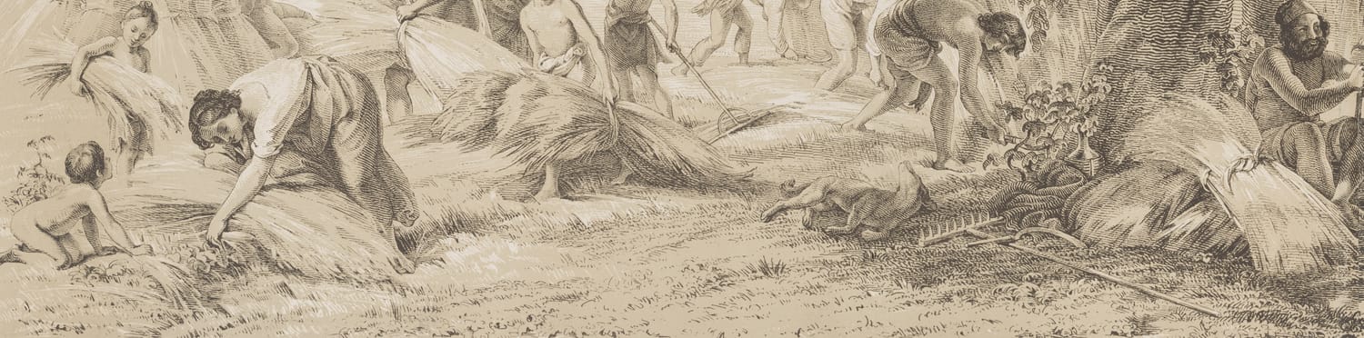 Darstellung einer Ernteszene nach einem Gemälde des Künstlers.