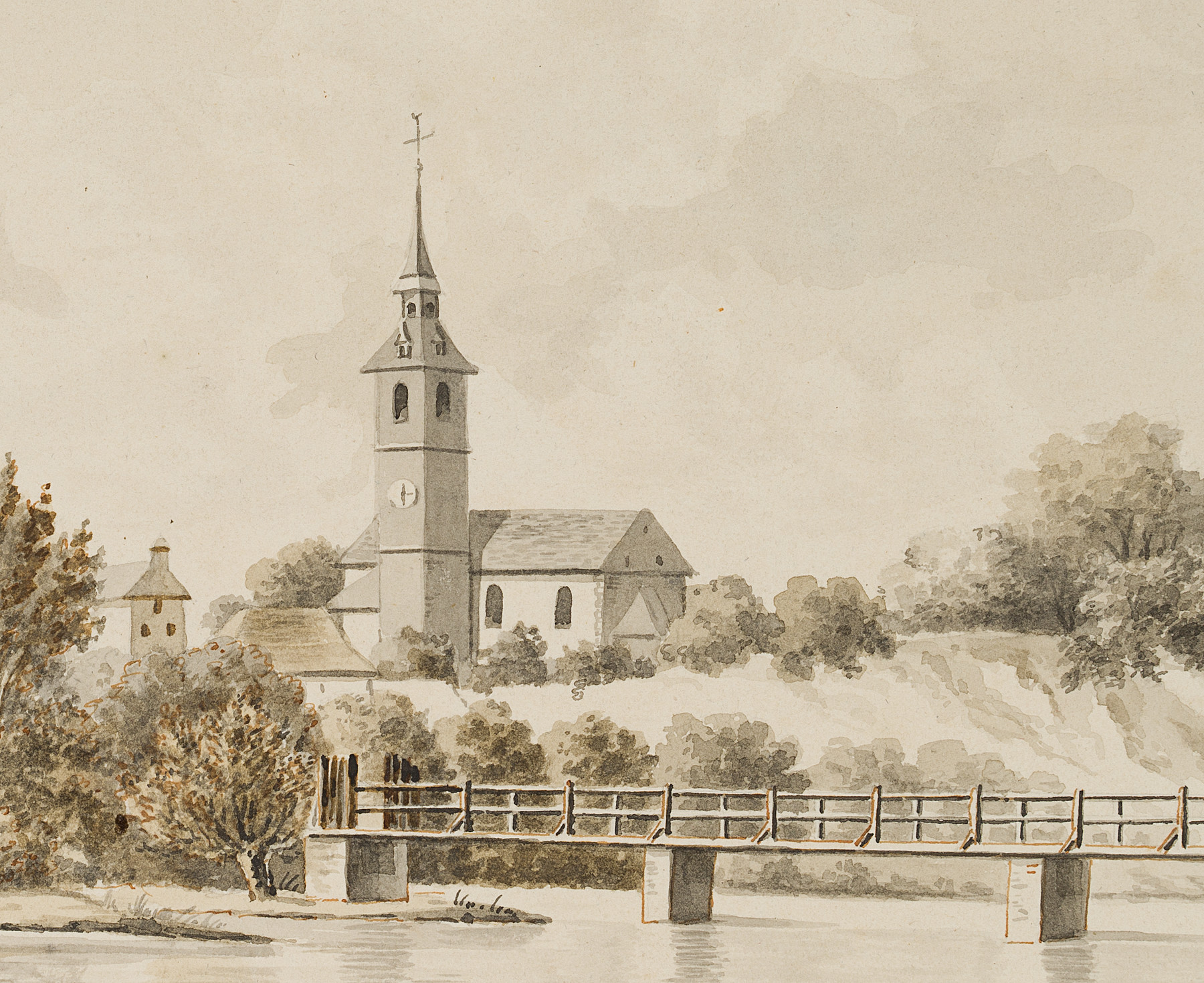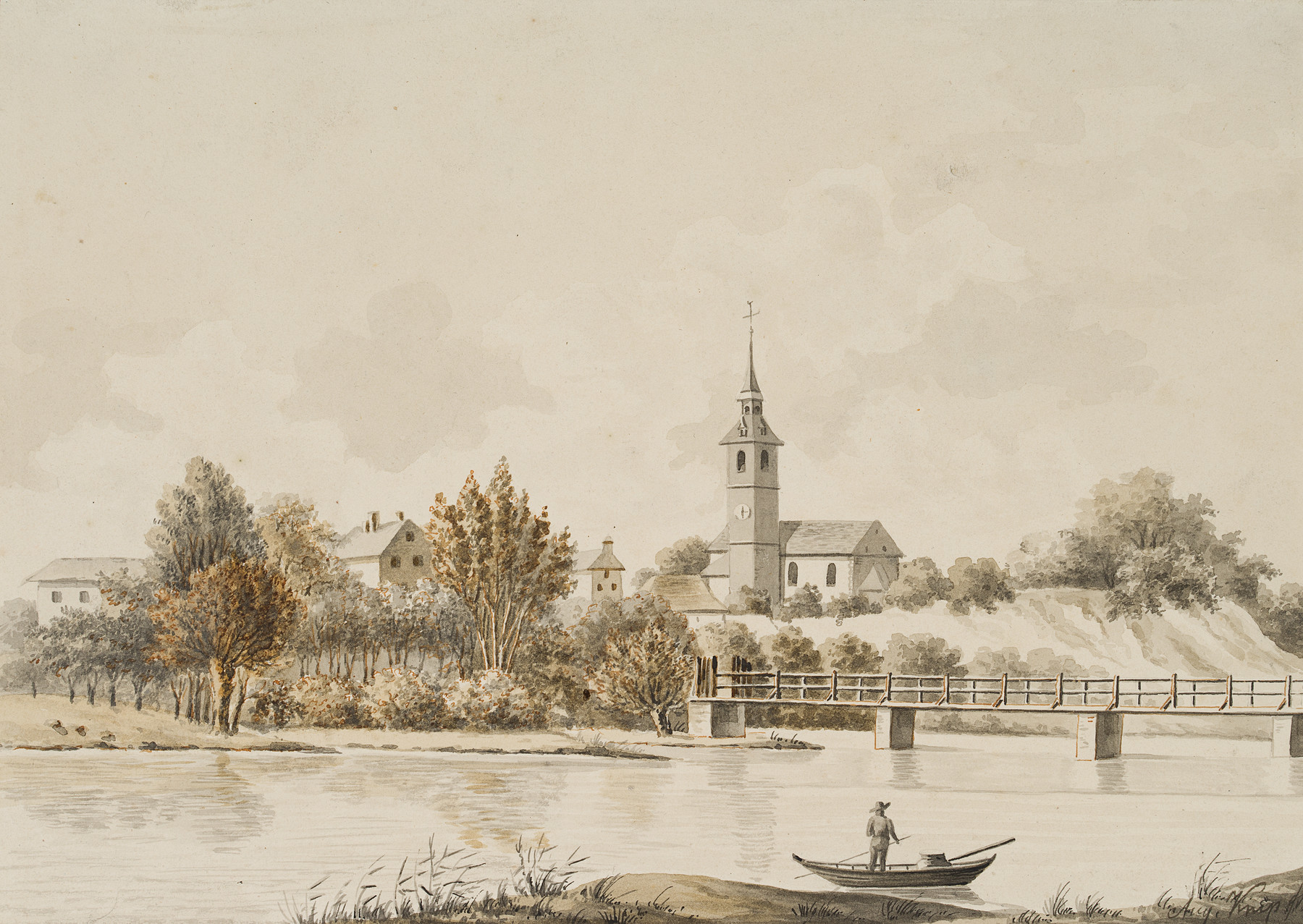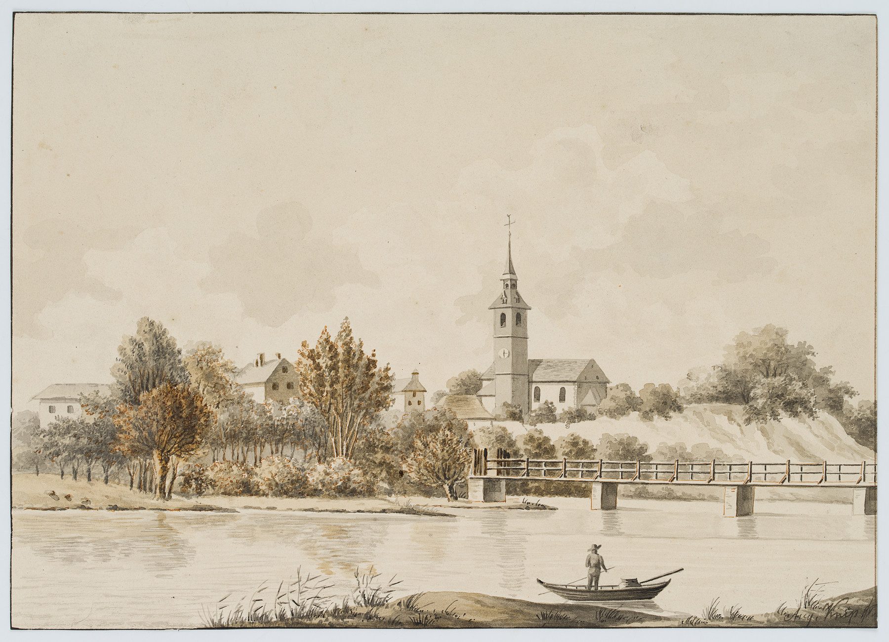 - Keywords: River landscape, boat, skipper, church, architecture, bridge, Auenwald, North Rhine-Westphalia, Germany, Aachen, 19th century, Biedermeier, Landscapes, Germany,