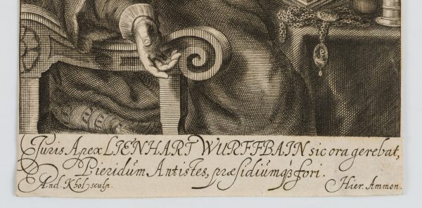 Andreas Kohl (1624 Nürnberg – 1657 ebd.), Bildnis des Juristen Leonhart Wurffbain (1581-1654), Vater von Johann Hieronymus Wurffbain, Doktor der Rechte in Nürnberg, 1654, Kupferstich