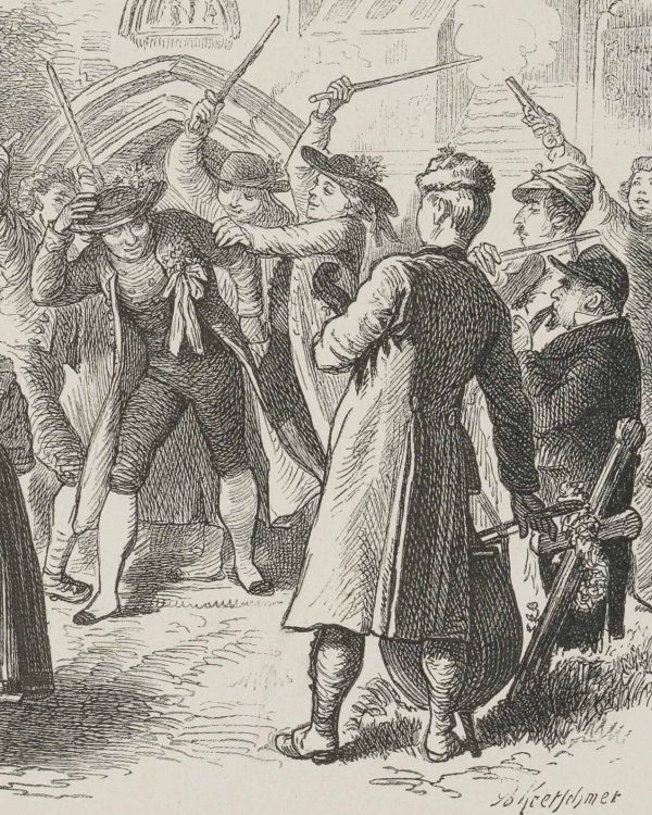 Albert Kretschmer (1825 Castle courtyard, Silesia – 1891 Berlin), Peasant Wedding in Westphalia Münster & Paderborn area, c. 1880, Wood engraving