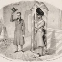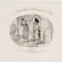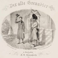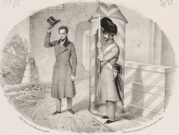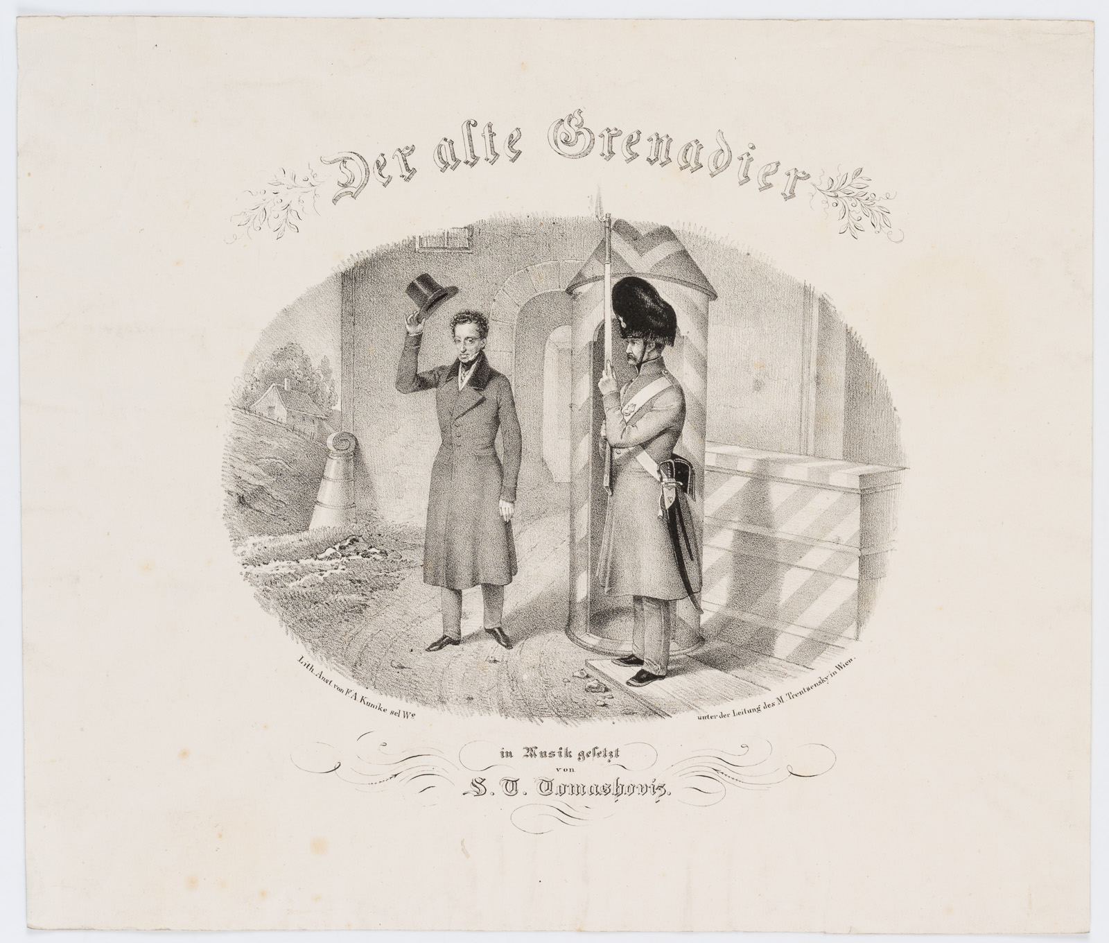 Adolph Friedrich Kunike (1777 Filovitz/Greifswald – 1838 Vienna), ‘The Old Grenadier’ with saluting grenadier saluted by a gentleman in frock coat and top hat, 19th century, Lithography