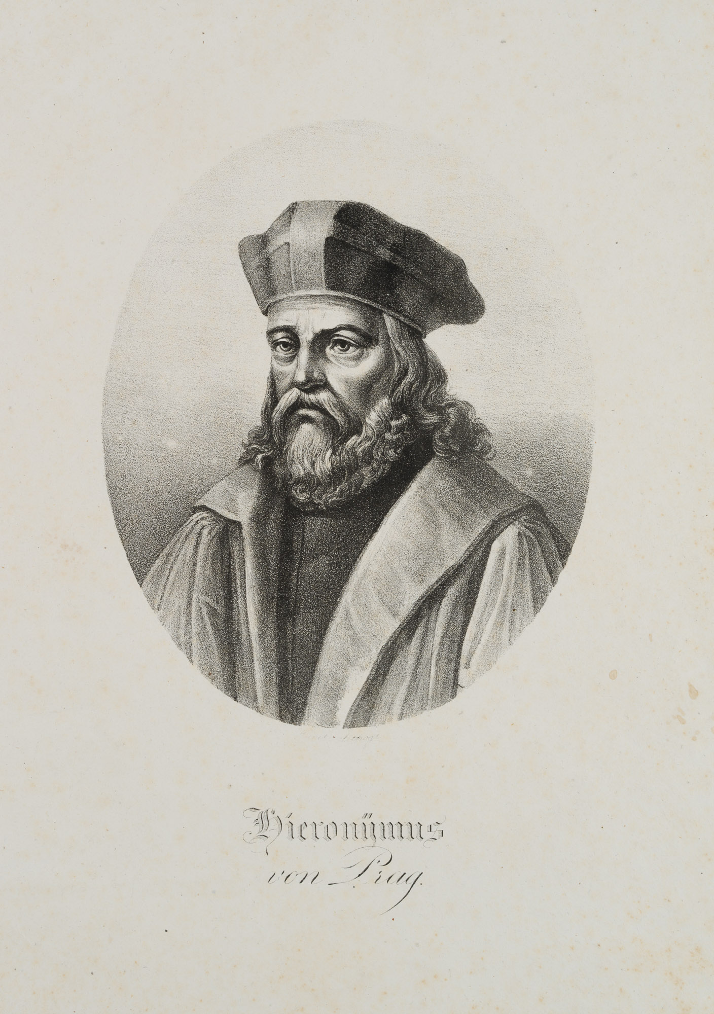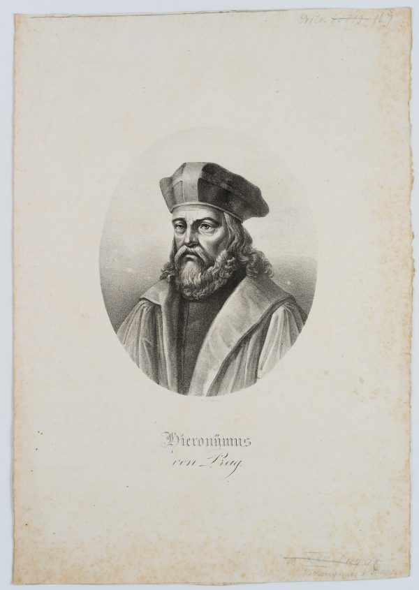 - Description: The portrait shows Jerome of Prague, Czech Jernoym Prazsky (1379 Prague – 1416 Constance), Bohemian scholar, comrade-in-arms of Jan Hus and co-founder of the Hussite movement. Signed and titled below the image.