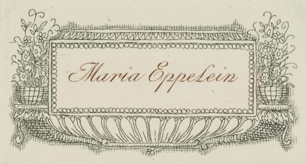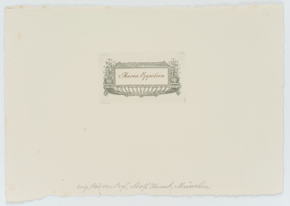 Adolf Kunst (1882 Regensburg – 1937 ), Artful nameplate for Anna Eppelein, c. 1915, color etching