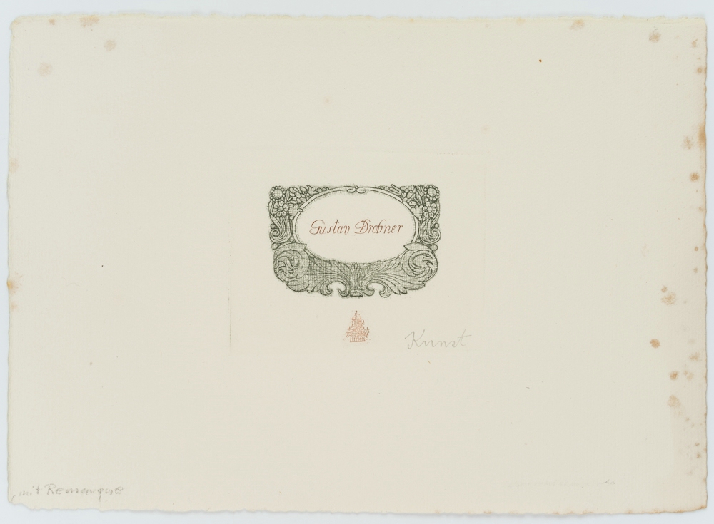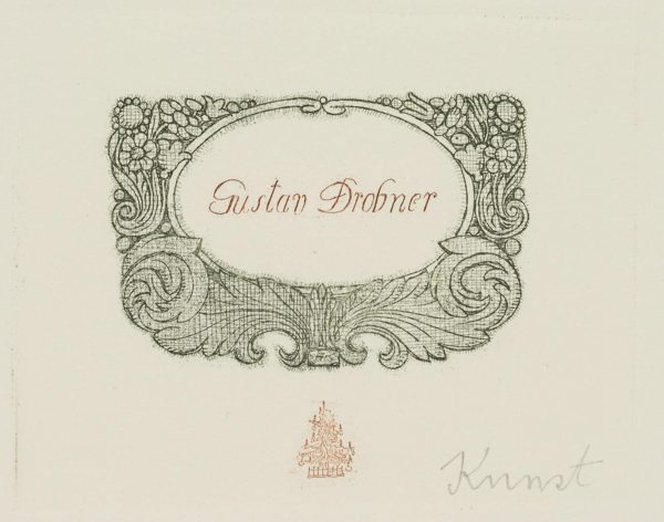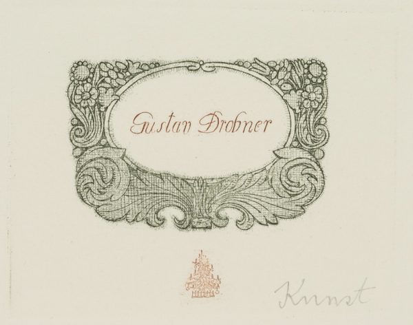 Adolf Kunst (1882 Regensburg – 1937 ), Artful nameplate for Gustav Drobner, c. 1915, color etching