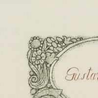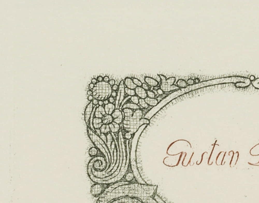 - Description: The name surrounded by classicistic decorative forms and flowers.
