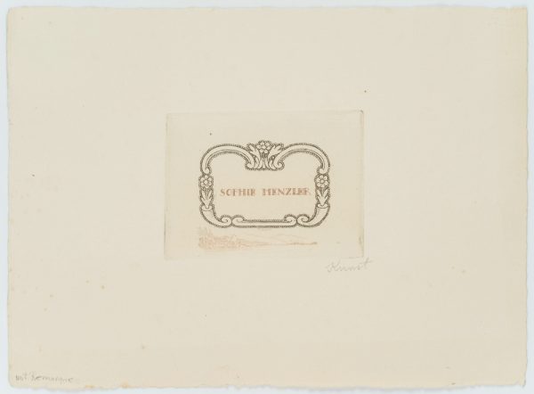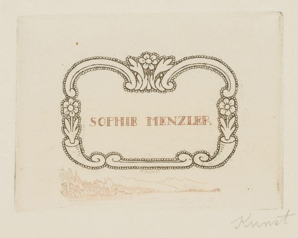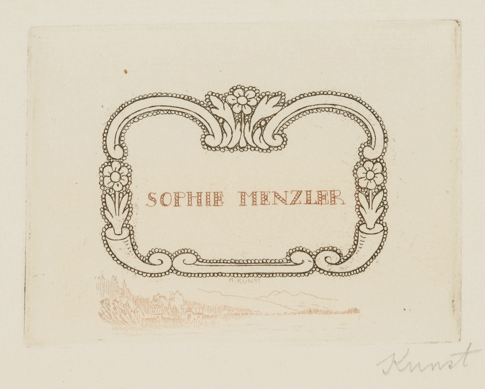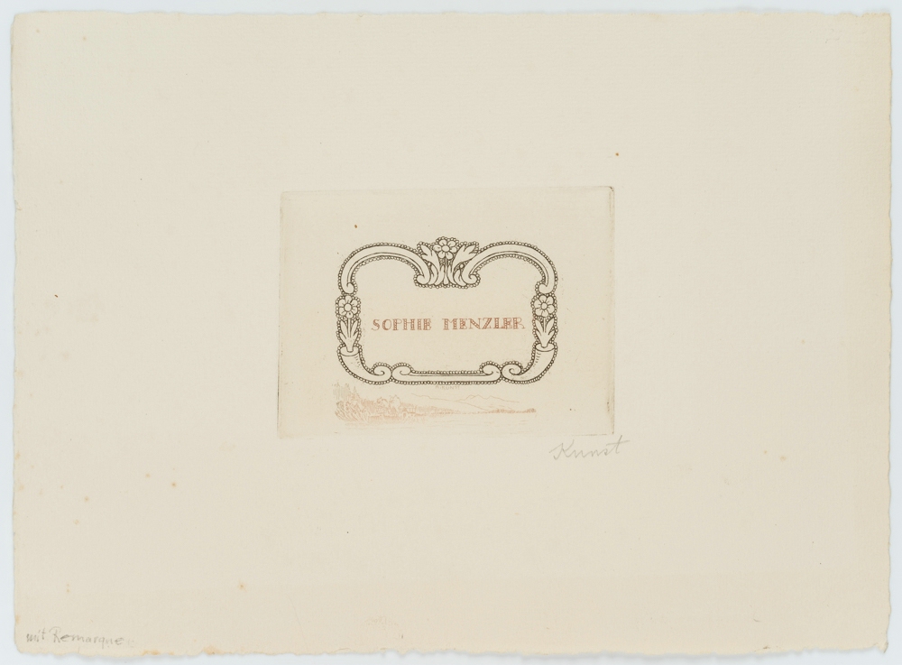 Adolf Kunst (1882 Regensburg – 1937 ), Artful nameplate for Sophie Menzler, c. 1915, color etching