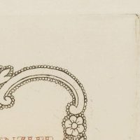 - Beschreibung: Von schlichten Dekorformen und Blumen umfasster Namenszug.