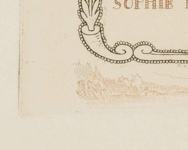 Adolf Kunst (1882 Regensburg – 1937 ), Kunstvolles Namensschild für Sophie Menzler, um 1915, Farbradierung