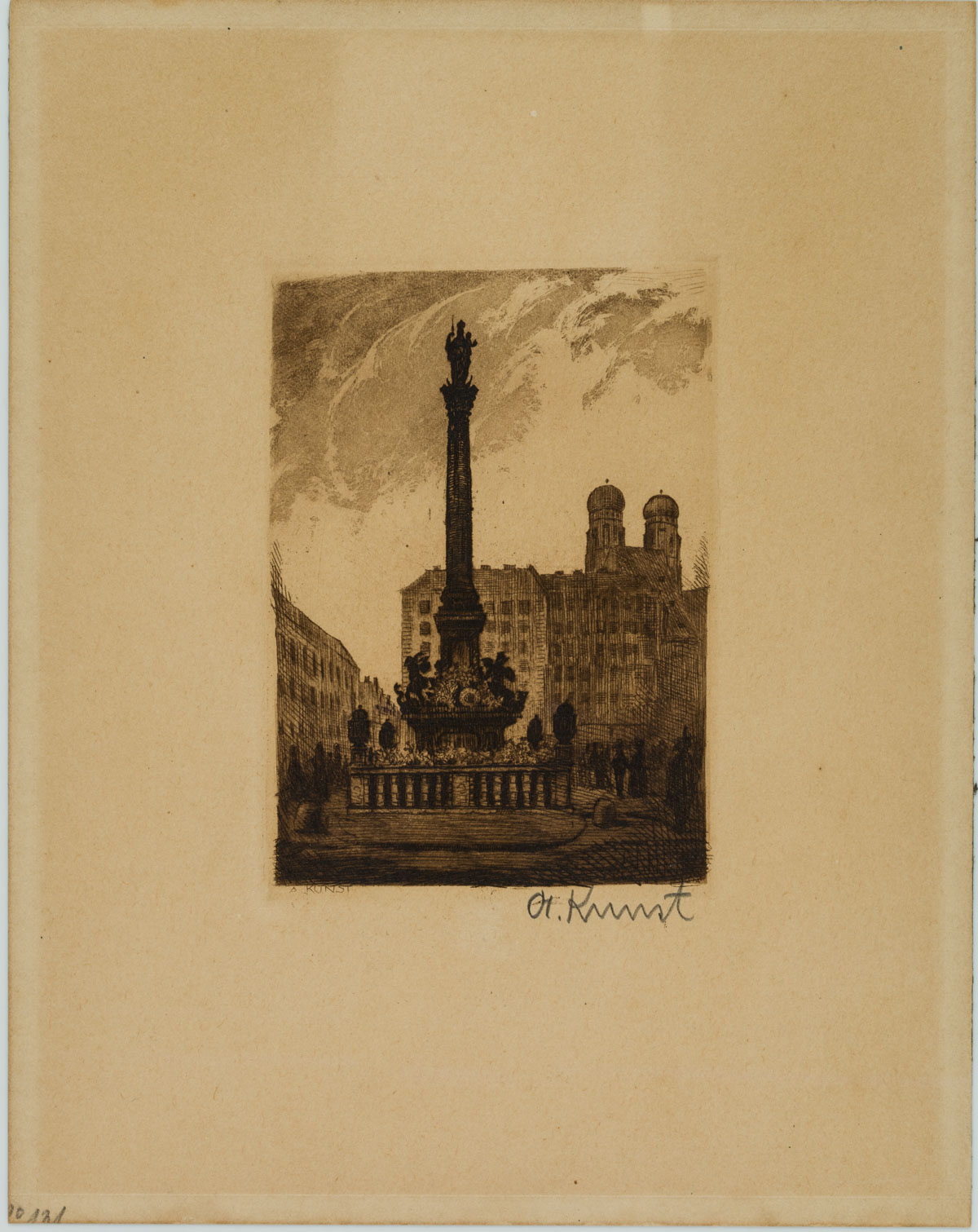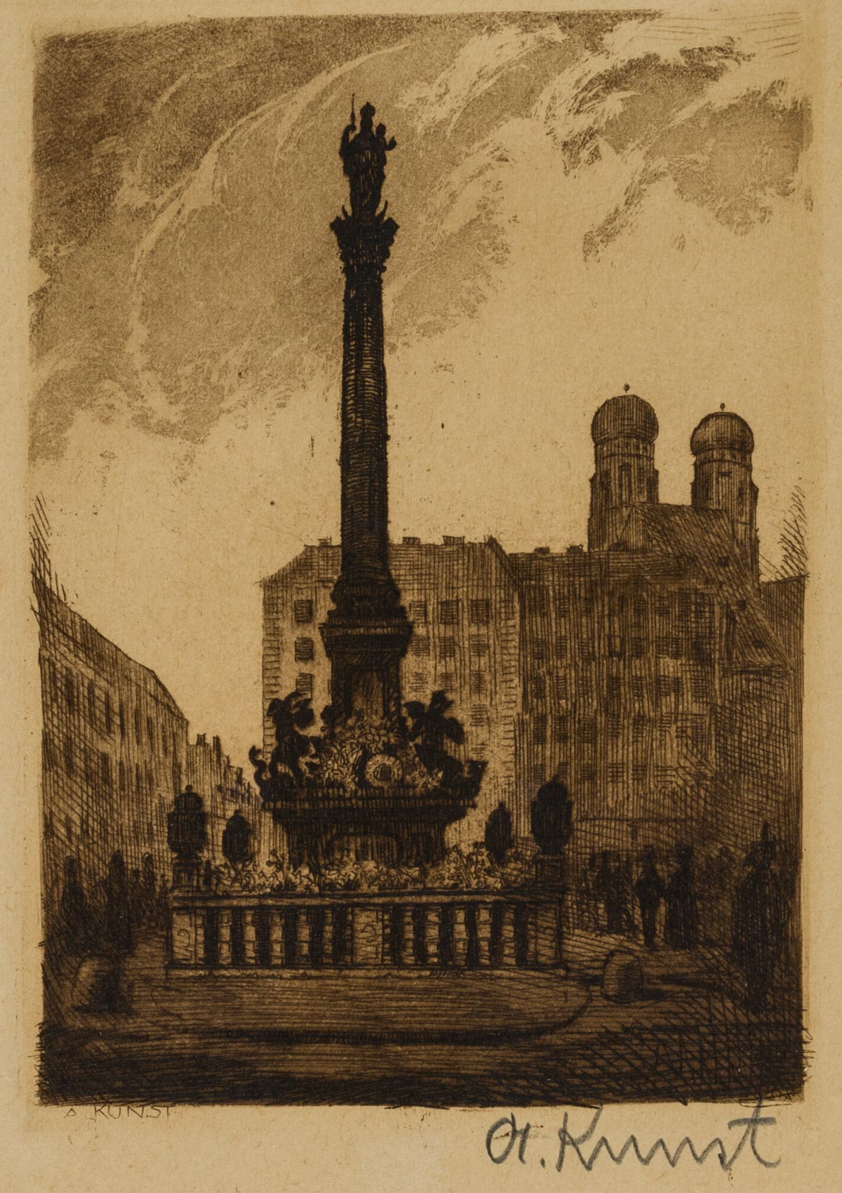 Adolf Kunst (1882 Regensburg – 1937 ), St. Mary’s Column in Munich, , Etching