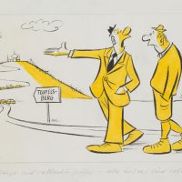 Arne Leihberg (1934 Leipzig – 1999 Berlin), Karikatur, Teufelsberg in Berlin, um 1970, Tusche