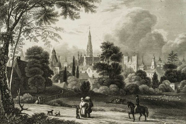Alexander Richard Marx (1815 – 1851 ), Brussels Partial view with cathedral and city hall, 1837, Steel engraving